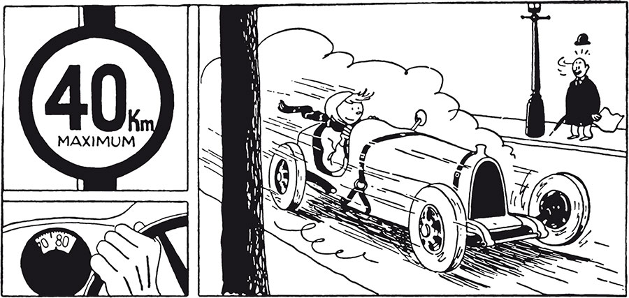 My daily Tntin < Sunday, 30 august 2020 > © Hergé - Moulinsart 2020 This year, only one motto: speed restrictions! Sign: “40 km/h maximum”.