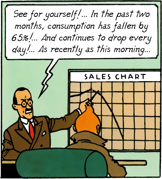 My daily Tntin < Tuesday, 22 september 2020 > © Hergé - Moulinsart 2020 The fall in oil prices! What forecasts? Not so simple to give, balanced between Laura, distillation and competition!