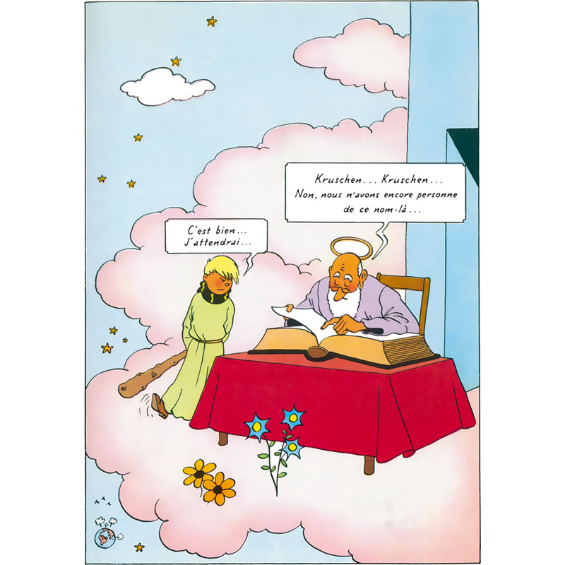 St. Peter: “Kruschen… Kruschen... No, we don't have anyone of that name yet…” Flupke: “That’s good... I'll wait…”