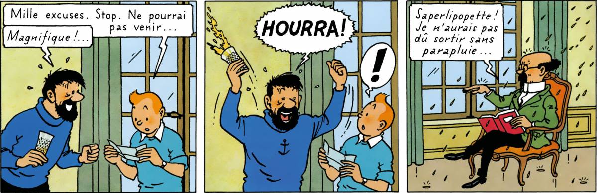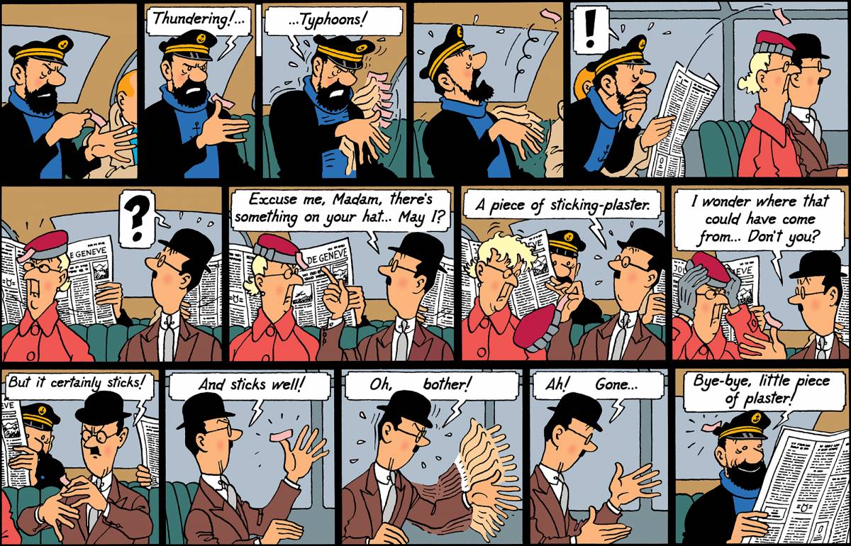 Dans l’Étoile mystérieuse, quand Philippulus le prophète, reçoit le vase d’eau que Tintin a dans sa main : cette case me fait aussi très rire. Mais j’en ai plein d’autres…