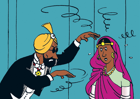 A fakir with a hypnotic gaze ? Cigars of the Pharaoh. Madame Yamilah, an extra-sensitive clairvoyant ? The Seven Crystal Balls. Turning water into wine ? The same story ! Magic isn't lacking in the Adventures of Tintin, but it often appears in the form of entertainment as opposed to the quasi-religious sorcery practised by many holy madmen and shamans in the past. Such activities sometimes proved hazardous for practitioners, even fatal: at certain times during the Medieval Inquisitions (from the 13th century) sorcerers and witches were relentlessly pursued.