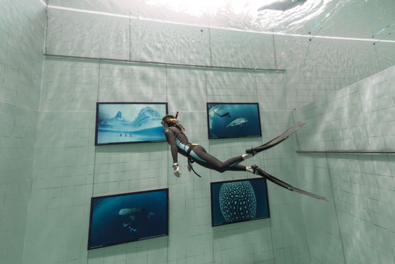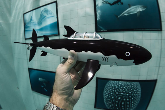 Tintin.com is setting off with Fred Buyle to discover the oceans all over the world. There will be many missions ahead and to help us on our quest we will be accompanied by Tintin and Snowy in Professor Calculus's shark submarine. The adventure begins at Nemo 33, which was the deepest diving pool in the world until the opening in February 2014 of the Y-40 pool in Italy. The first mission is to test Calculus's submarine at depth, to ensure that it can navigate without floating to the surface like a balloon or sinking to the bottom like a stone.