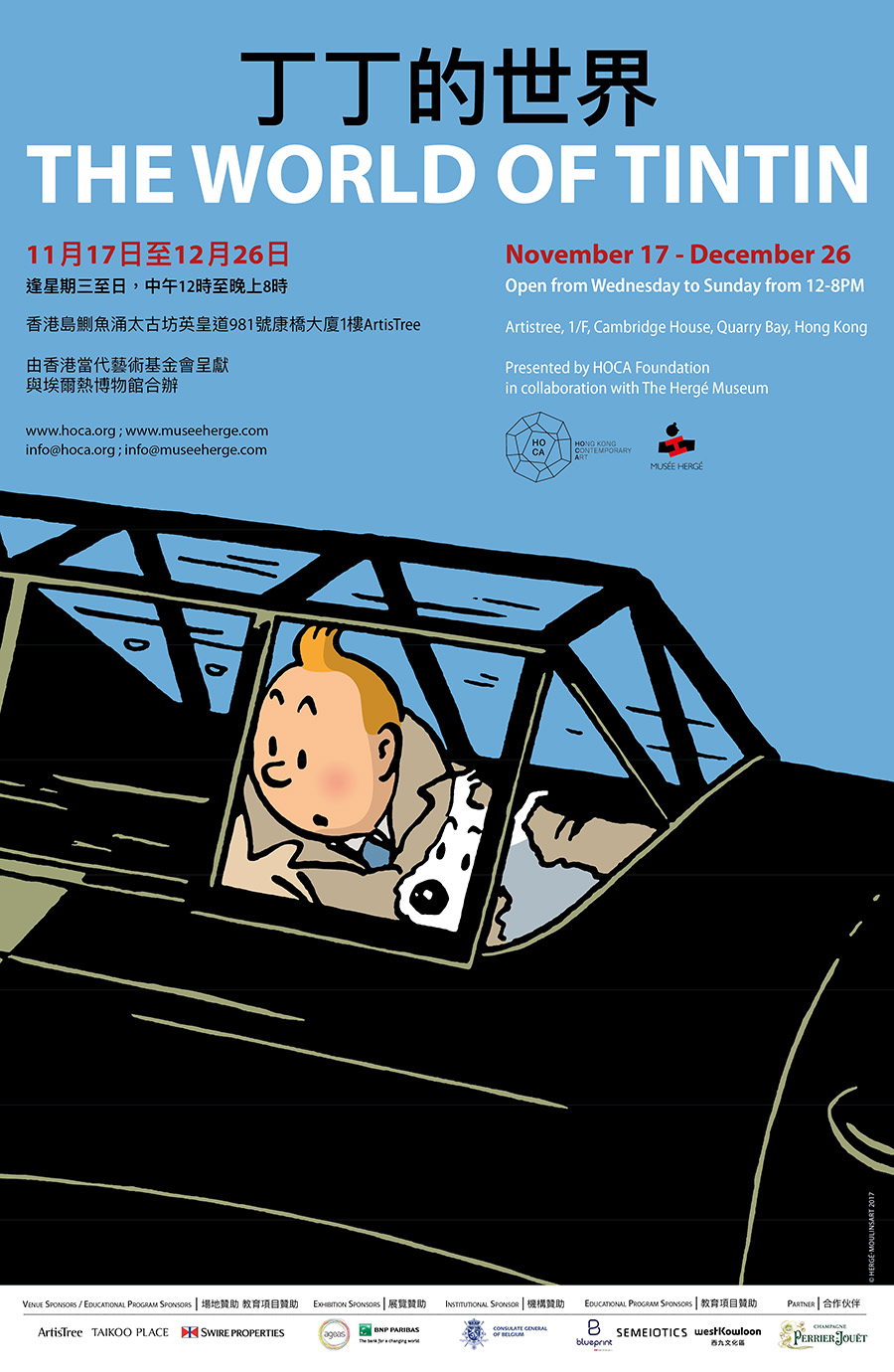 HONG KONG. – 10 October 2017 – HOCA Foundation is proud to announce a landmark exhibition exploring the adventures of global icon Tintin. The largest presentation in Hong Kong to date, it showcases 8 albums from the renowned “The Adventures of Tintin” series. The immersive experience, featuring vivid scenography, celebrates the imaginative world created by the Belgian illustrator and creator of Tintin, Hergé. Presented in collaboration with the Hergé Museum, “THE WORLD OF TINTIN,” will run from November 17 – December 26, 2017 at the new ArtisTree, venue sponsored by Swire Properties. A public two-day conference, as well as a series of educational comic art workshops will run in parallel, tailored for students in collaboration with local schools.