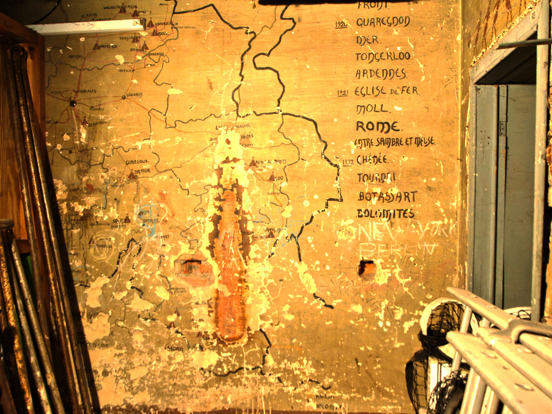 The scout hall were used for other purposes from 1925 onwards, notably as a garage, which saved the frescoes from unfortunate overpainting over the decades. Plunged into a certain anonymity, this testimony to Hergé's early imagination was rediscovered in 2007.