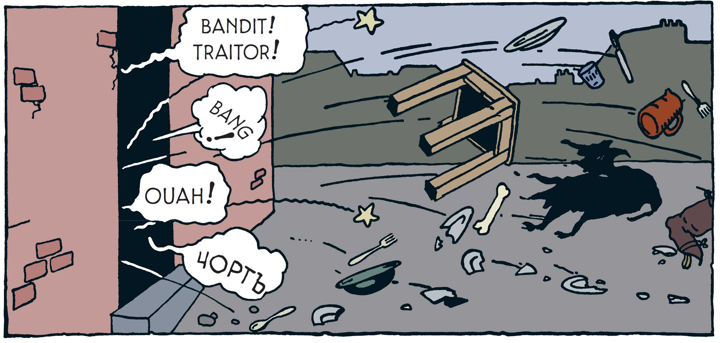 Unfortunately for Tintin, meals are never free. In fact, he often pays a high price for them. And if the bill is high, it's because some ill-intentioned people often invite themselves to his table without warning. When this happens, the meal immediately turns into a trap. Quick-witted and always on the alert, the little reporter quickly senses the trickery and is quick to get rid of these bad payers, even if it means sacrificing a good soviet-style cabbage soup.