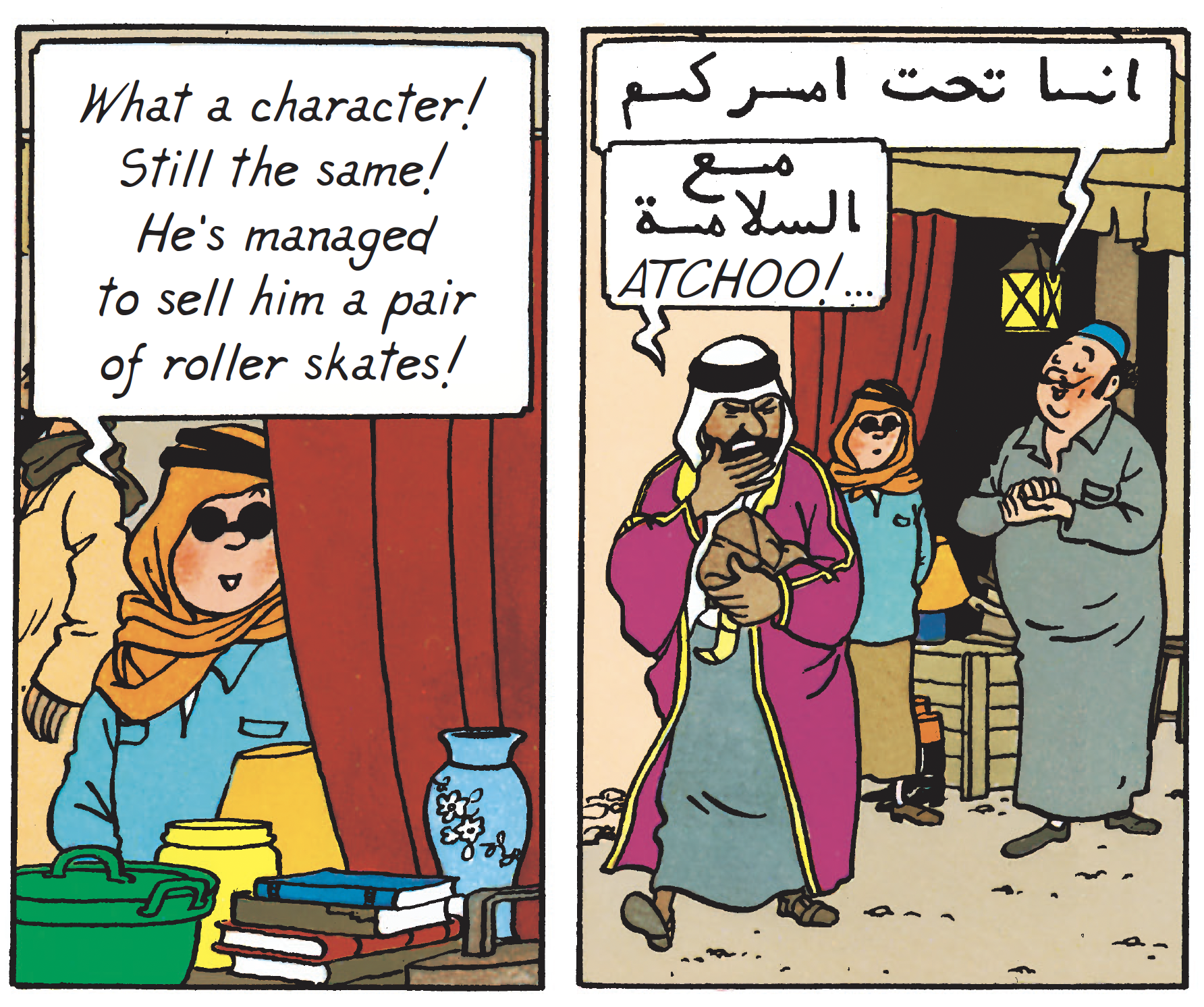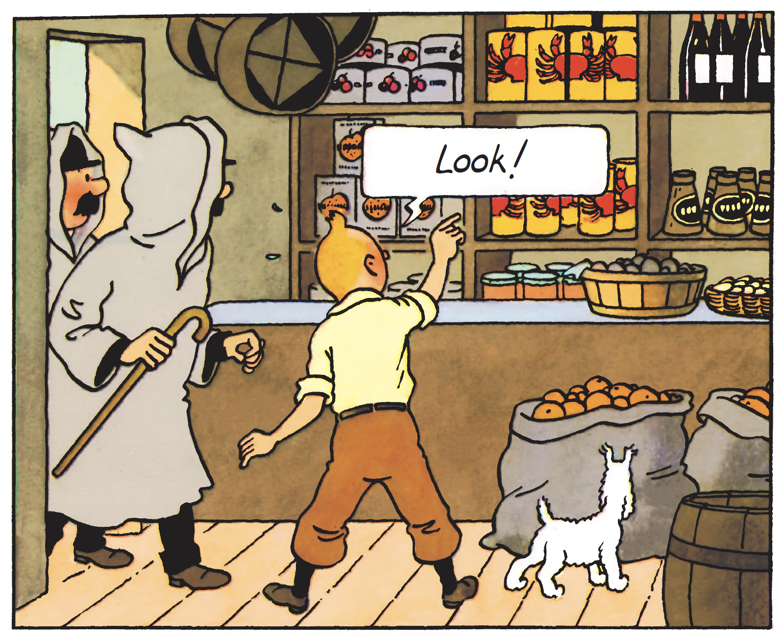 At Mohammed Ben Ali's, the grocer in The Crab with the Golden Claws, for example, he pulls off a double coup by discovering a large stock of canned goods - the famous yellow tins he's been investigating since the beginning of the adventure - and by obtaining a vital piece of information: the name of the town's biggest trader, a certain Omar Ben Salaad.