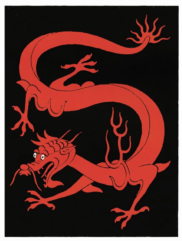 Although there is a wide variety of dragons and serpentine monsters in Chinese culture, Hergé chose to depict just one species. The best-known of these is the moustachioed and horned bearded Lóng, which he usually depicted in an undulating "S" shaped posture.