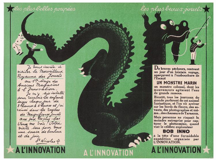 Equally at home creating comic strips and promotional illustrations, Hergé took advantage of a commission from the Belgian department store "A l'Innovation" to take the plunge. The store asked him to create its future toy campaign. Quite a programme!