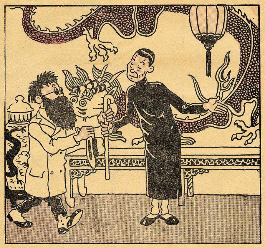 In the meantime, Hergé had become an expert in dracology. In 1936, in The Blue Lotus, he sent his little hero to China - the land of dragons - to uncover a vast opium trade. For this reason, he used the animal as the main design of his cover illustration, even though it plays no part in the story. But thanks to his friend Chang-Chong-chen, he knew just how essential it was to the country's cultural life.
