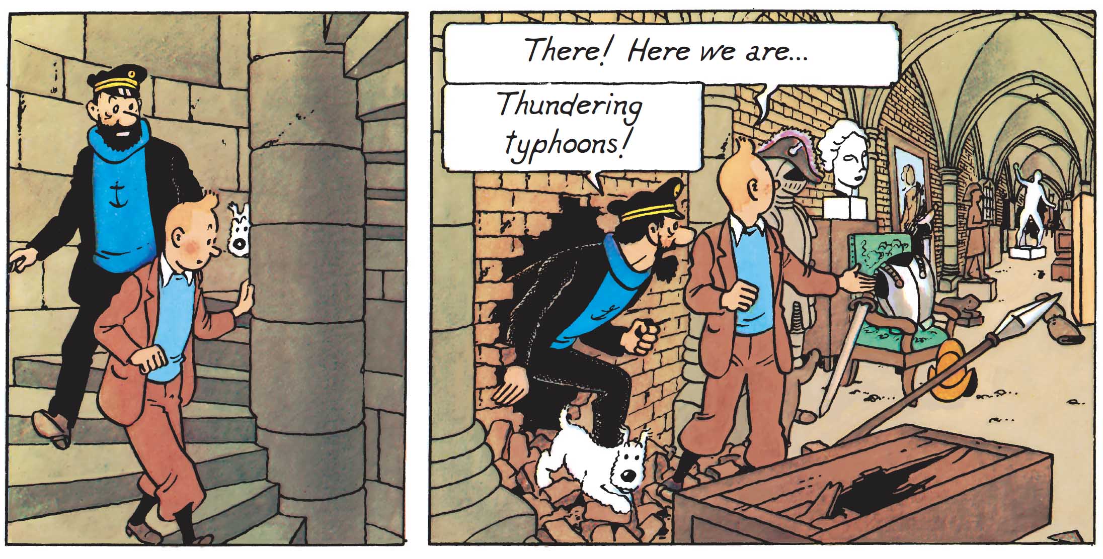 Hergé’s passion for ancient objects shines through in The Secret of the Unicorn. The three-masted ship, now at one with fish and seaweed, is the most imposing of all artifacts.