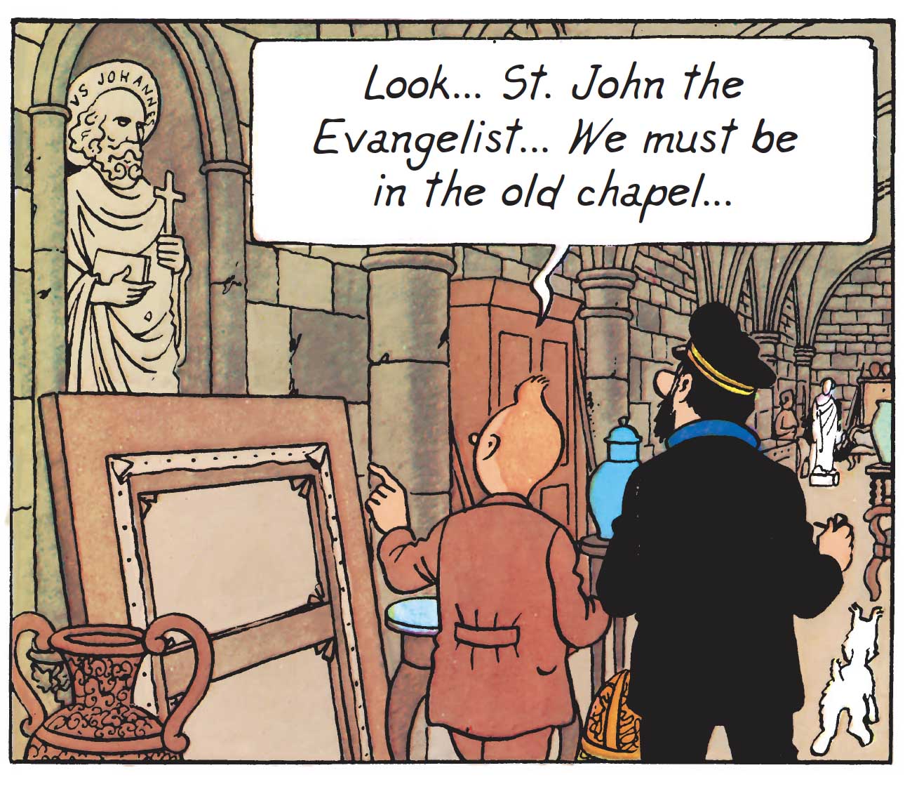 The theme of hidden treasure resurfaces in Red Rackham’s Treasure, as Haddock and Tintin set out to uncover the captain’s ancestral legacy. Along their journey, they come across a chapel concealing a statue of Saint John the Evangelist, a remnant of Marlinspike’s medieval past. Its architecture echoes the stark yet powerful lines of Romanesque churches, while the motif of buried treasure harks back to 18th-century tales of pirates and explorers.The shadow of privateers looms over this adventure, rekindling legends of hidden gold and cryptic maps. "Blistering barnacles!"