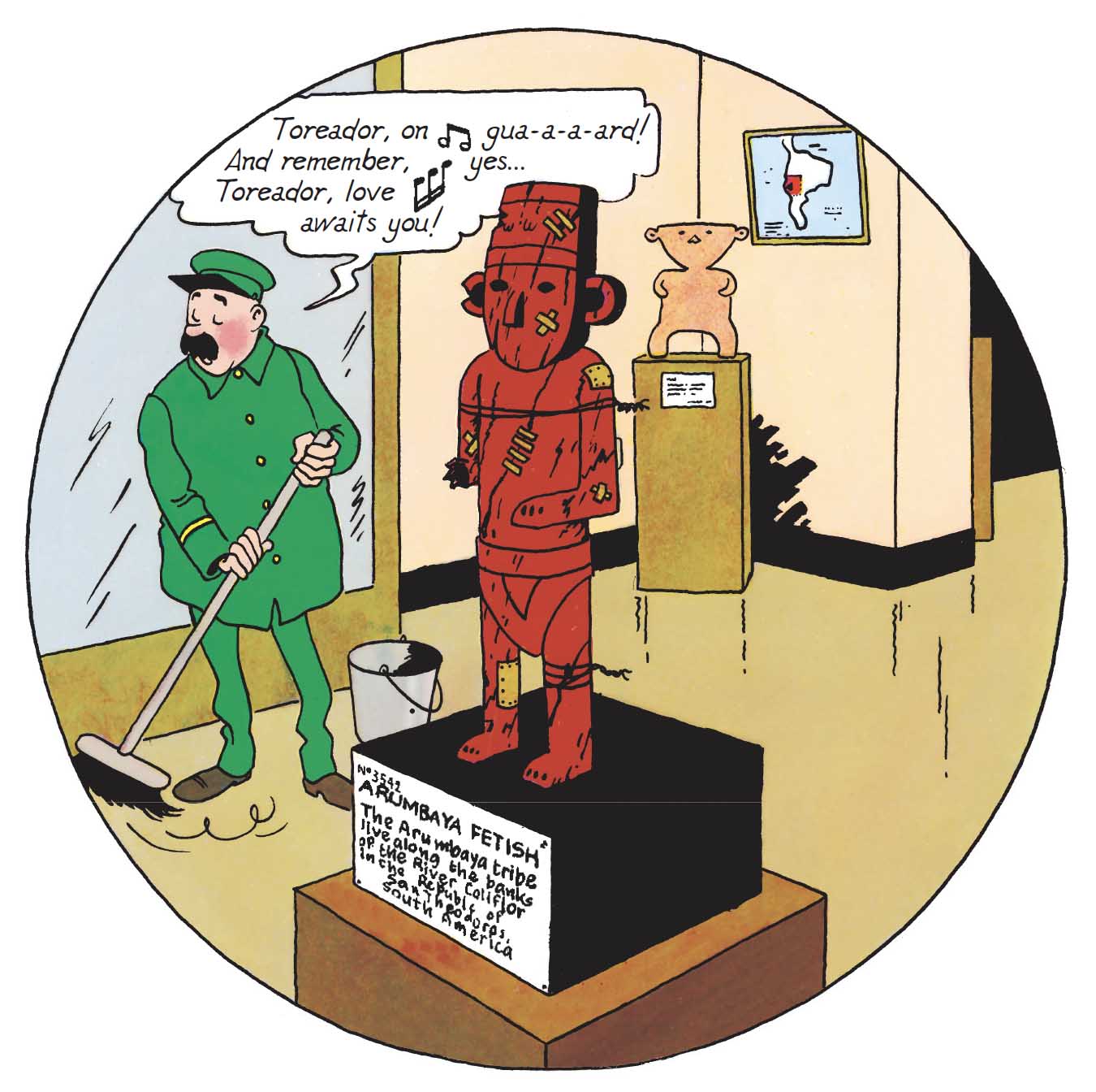 What if I told you about a story that revolves around a stolen Arumbaya statuette — an object that is both a mystery and a coveted prize? You’ve guessed it: this time, we’re delving into The Broken Ear. Hergé introduces an Arumbaya statuette, inspired by pre-Columbian art, which becomes the centerpiece of a tale of theft and intrigue.