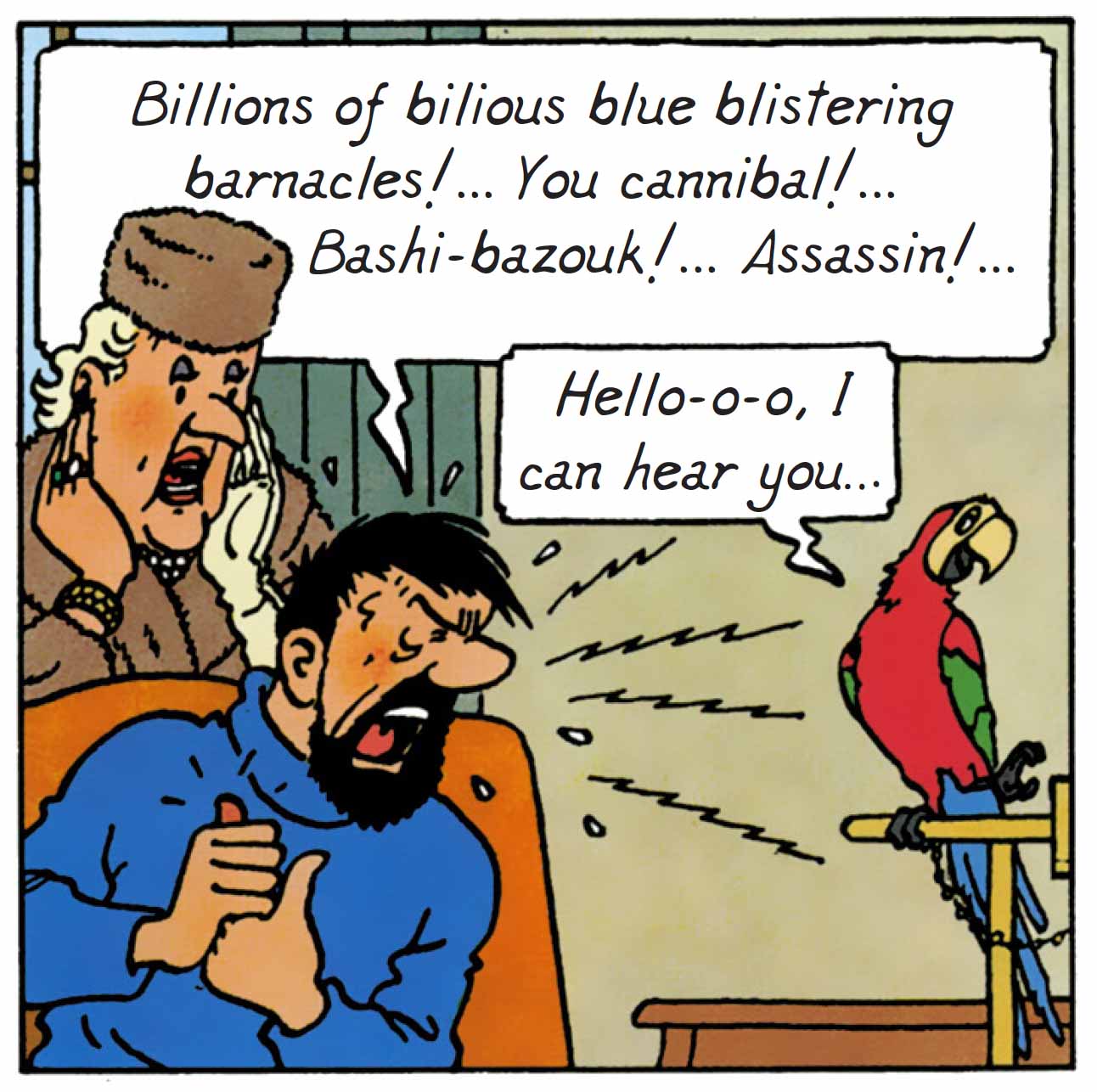 This entire dynamic hinges on a carefully orchestrated series of misunderstandings. The parrot becomes a comedic conduit for suspicion by repeating phrases out of context. The presence of the gypsies, initially accepted by Haddock, gradually becomes a source of mistrust based solely on gossip. Irma’s naturally discreet demeanor is consistently misread as suspicious.