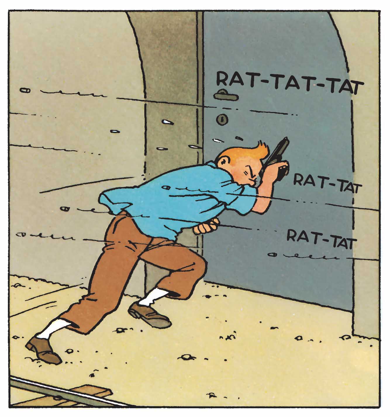 Danger is one of the most constant visual engines in Tintin’s universe. Without it, a large part of the grammar of modern adventure would be missing. Hergé multiplies extreme situations (falls, explosions, chases, near-drownings) always with perfect clarity.