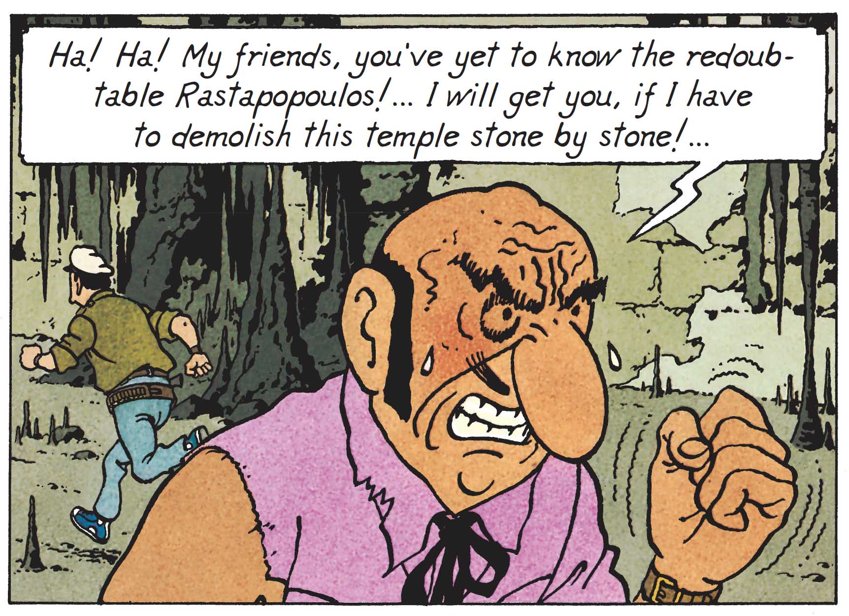 There would also be no overbearing Bianca Castafiore, capable of upending an entire narrative (and driving Haddock mad) by the sheer force of her voice. Without Thomson and Thompson, those absurd breathing spaces that regularly defuse tension would be lost. Even the villains would suffer: without figures like Rastapopoulos (more manipulative than brutal) evil would become distinctly less entertaining.
