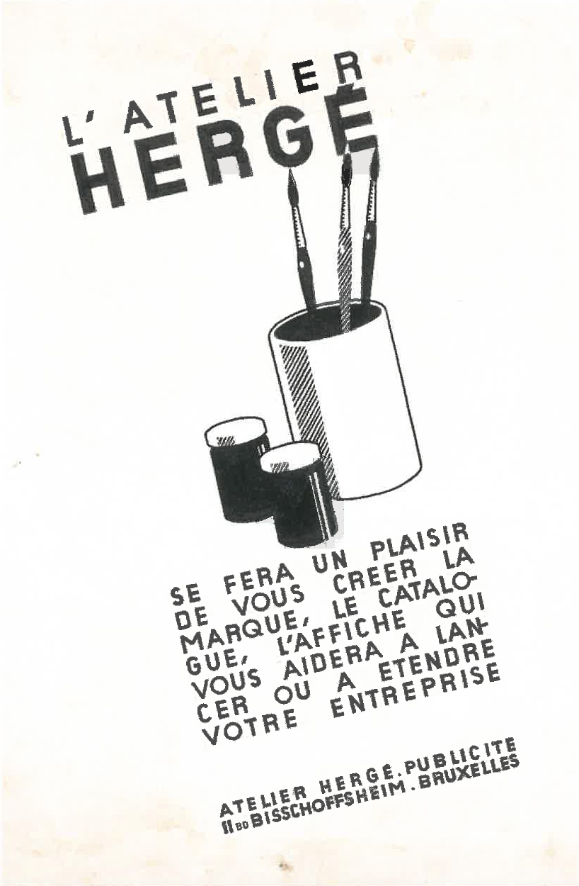In the early 1930s, alongside his work for Le Vingtième Siècle and Le Petit Vingtième, he created posters, logos and advertising campaigns for various brands. In order to meet the growing demand for his services, he eventually founded his own studio, simply called Atelier Hergé, on 3rd January 1934.