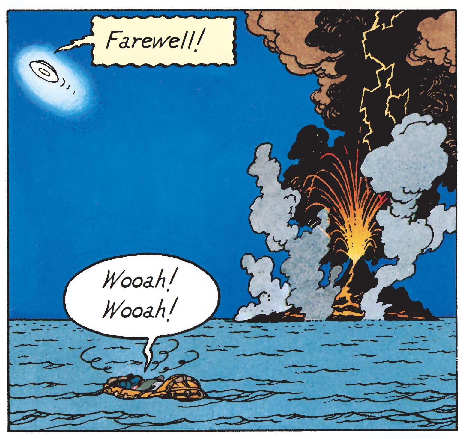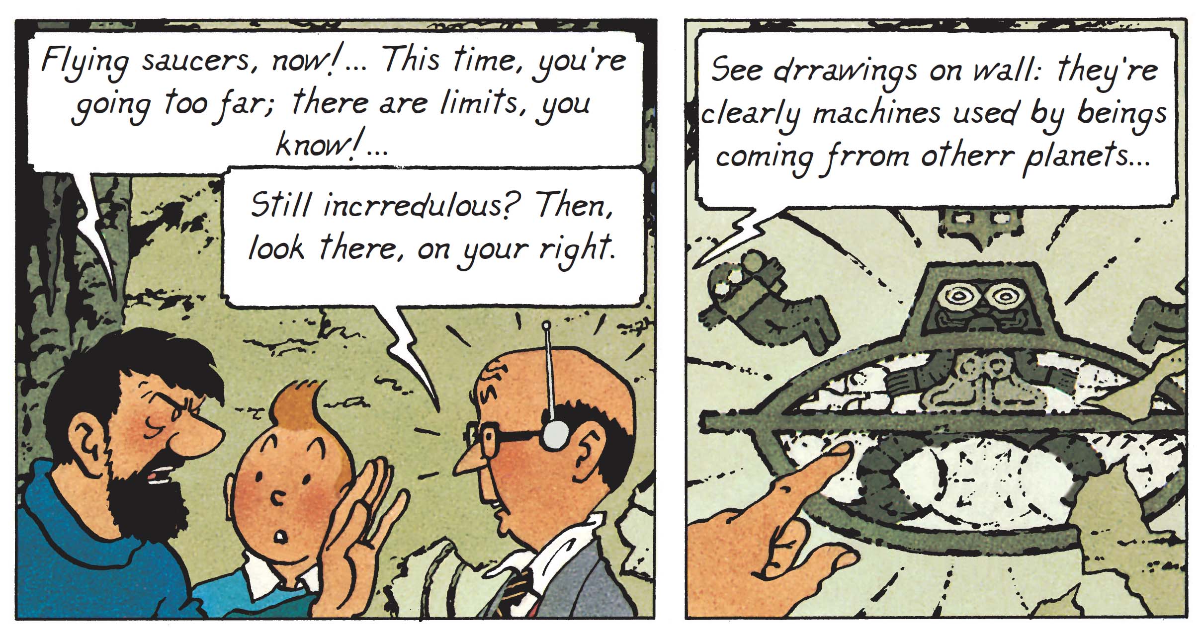There can be no doubt: myth and technology overlap.The ‘gods’ of yesterday are indeed the extraterrestrials of today. And for Hergé, this is the perfect opportunity to make an unprecedented foray into the realms of science fiction, a field he had previously only touched upon.
