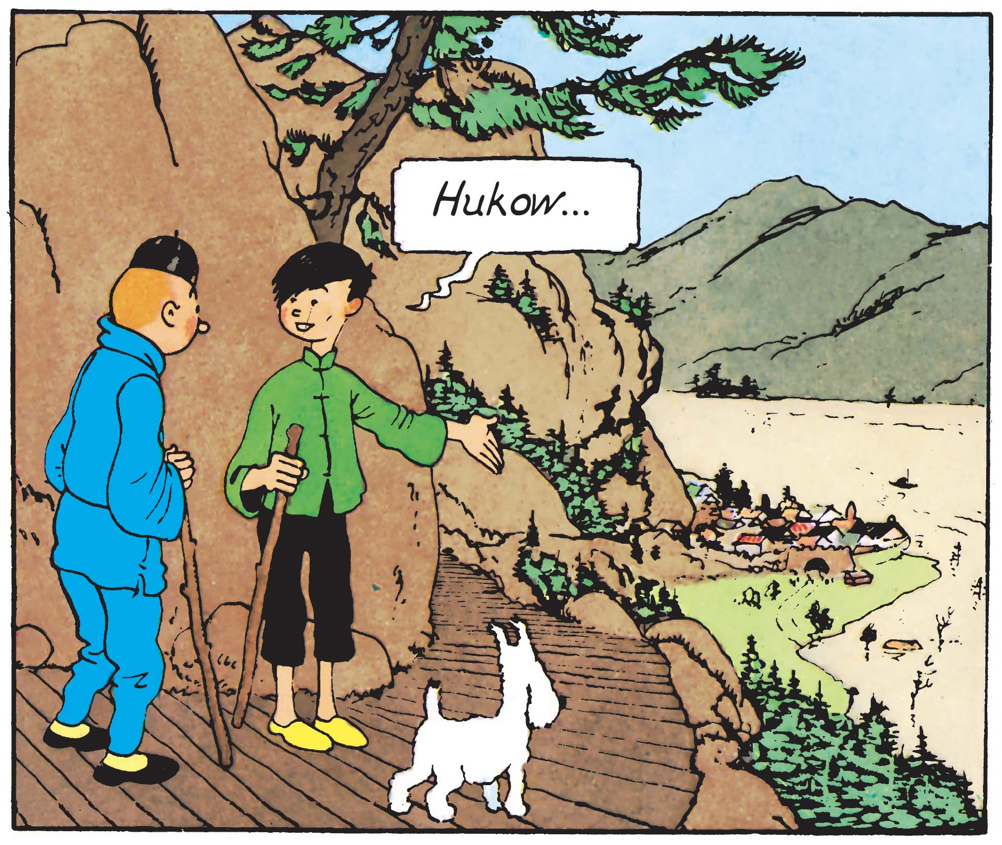 These few vignettes, which might seem like a simple pause between two action scenes, serve no purpose if we strictly follow the progression of the story. Tintin has just saved Tchang from drowning, and the two continue their journey toward Hukow, a fictional village inspired by traditional China.
