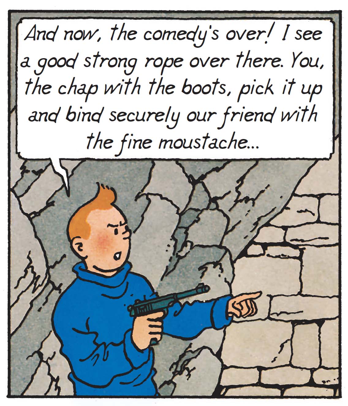 There is no denying the pleasure of seeing our hero absorb, from one adventure to the next, the customs and codes of the places he visits, sometimes with a clumsiness that is not without charm. Here, Tintin encounters a distinctly European setting; accustomed until now to exotic locales, he finds himself in a medieval castle with a fearsome reputation…
