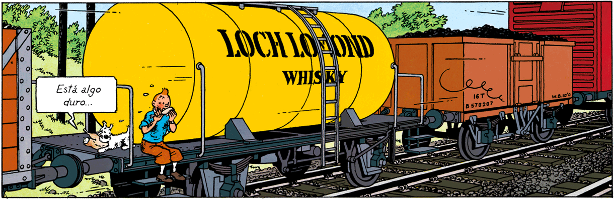 En esta aventura, nuestro héroe recurrirá a distintos medios de transporte: un tren belga, un camión, el barco postal Ostende-Dover, un taxi, un remolque, el autostop, un tren británico, un tren de carga, un avión de pasajeros, una lancha a motor y, de vuelta, un avión de línea. El episodio del tren de carga merece una digresión rápida. En las dos primeras versiones, el vagón-cisterna sobre el que se instalan Tintín y Milú llevaba en el flanco el nombre de su contenido, el muy real Johnnie Walker. En la versión 1966, esta mención cede su lugar al imaginario Loch Lomond, adoptado posteriormente por el capitán como whisky predilecto.