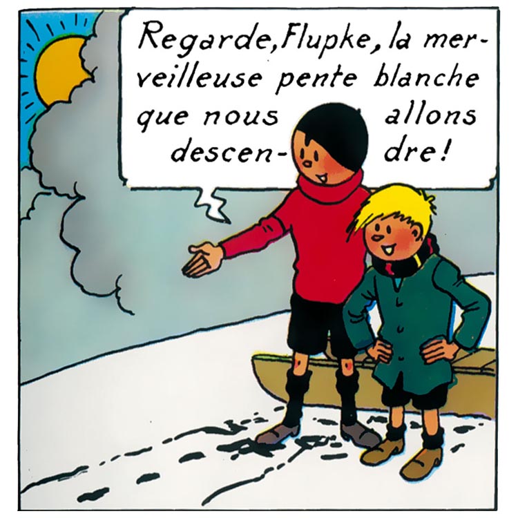 Tintin au quotidien < Samedi 3 octobre 2020 > © Hergé - Moulinsart 2020 An endangered hobby… Quick: “Look, Flupke, the marvellous white slope we're going down!”