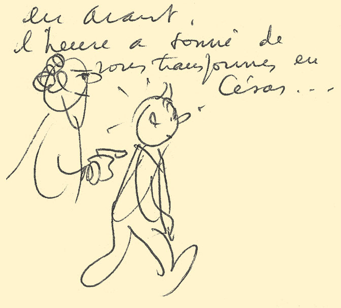 The guard: “Forward! The hour has struck for you to be transformed into a ‘César’…”