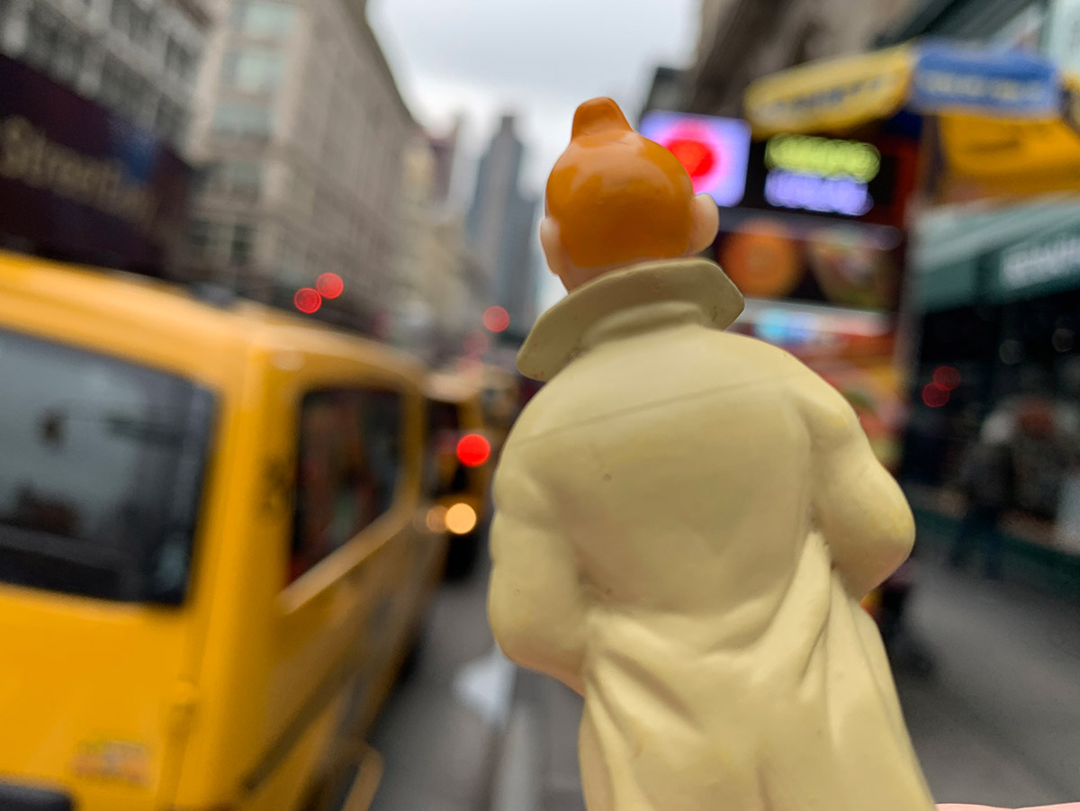 Tintin au quotidien < Lundi 19 octobre 2020 > © Hergé - Moulinsart 2026 Hep Taxi ! La Checker Cab Company créée en 1922 par Morris Markin, russe d’origine, tailleur de son état. +6 Le Yellow Cab colorise les longues avenues de NYC. Photo © Moulinsart 2020