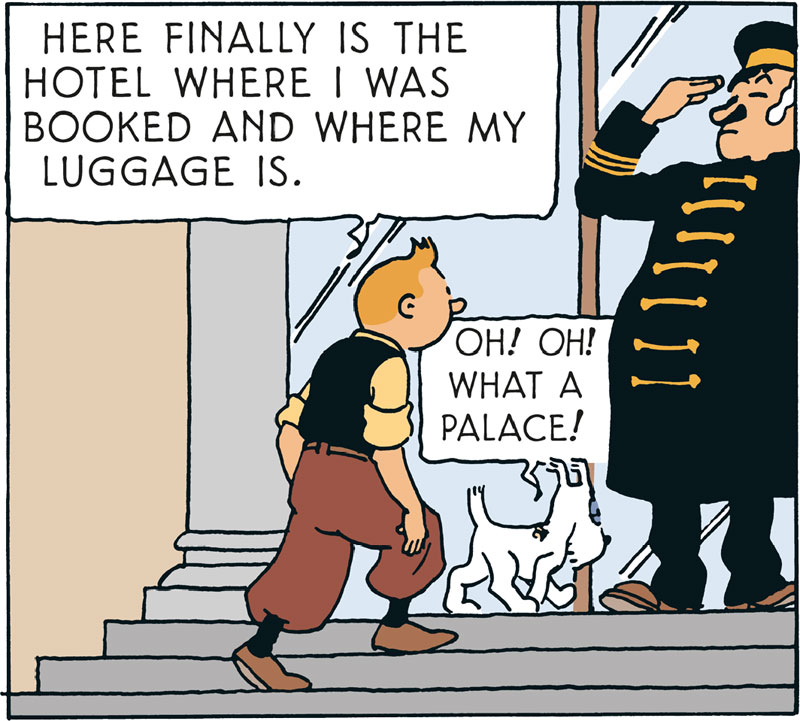 Tintin au quotidien < Samedi 31 octobre 2020 > © Hergé - Moulinsart 2020 The concierge, baggage handler. What palace doesn't have a concierge? Snowy seems to like it.