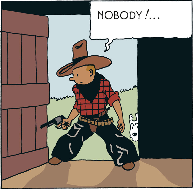 Tintin completes his outfit with the mythical plaid shirt that personifies the West or the Great American Far North.