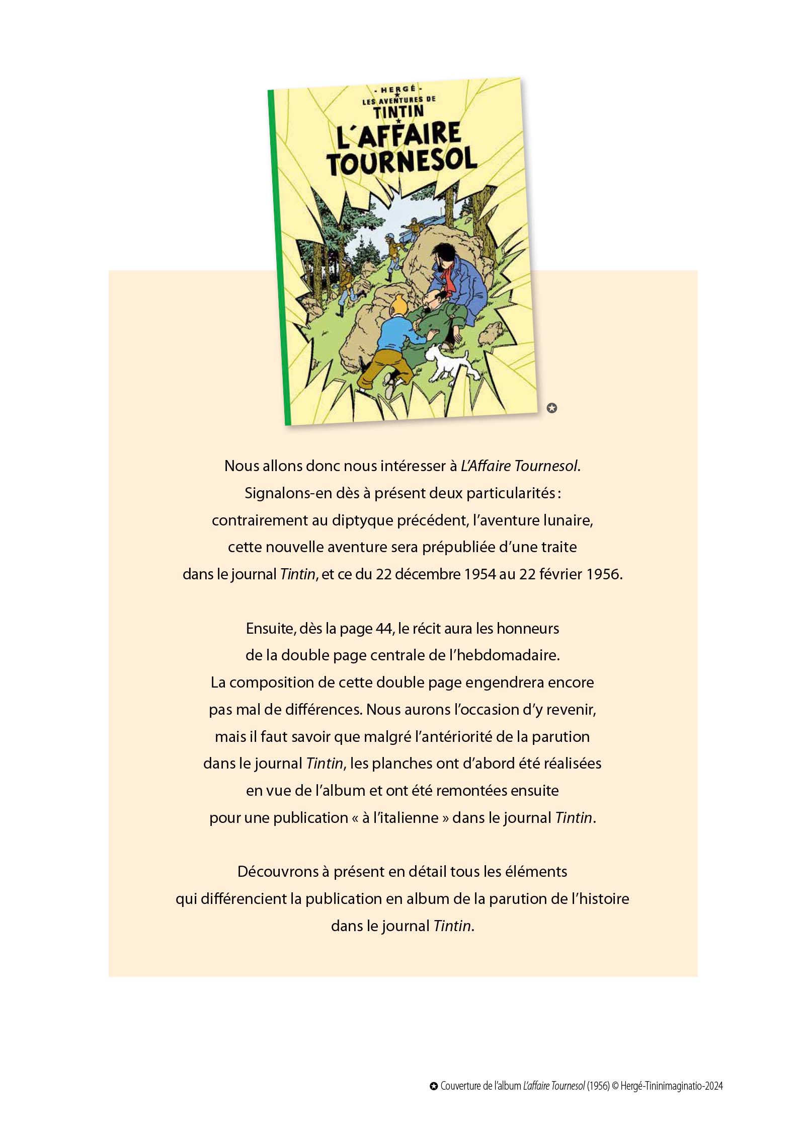 Nous allons donc nous intéresser à L’Affaire Tournesol. Signalons-en dès à présent deux particularités : contrairement au diptyque précédent, l’aventure lunaire, cette nouvelle aventure sera prépubliée d’une traite