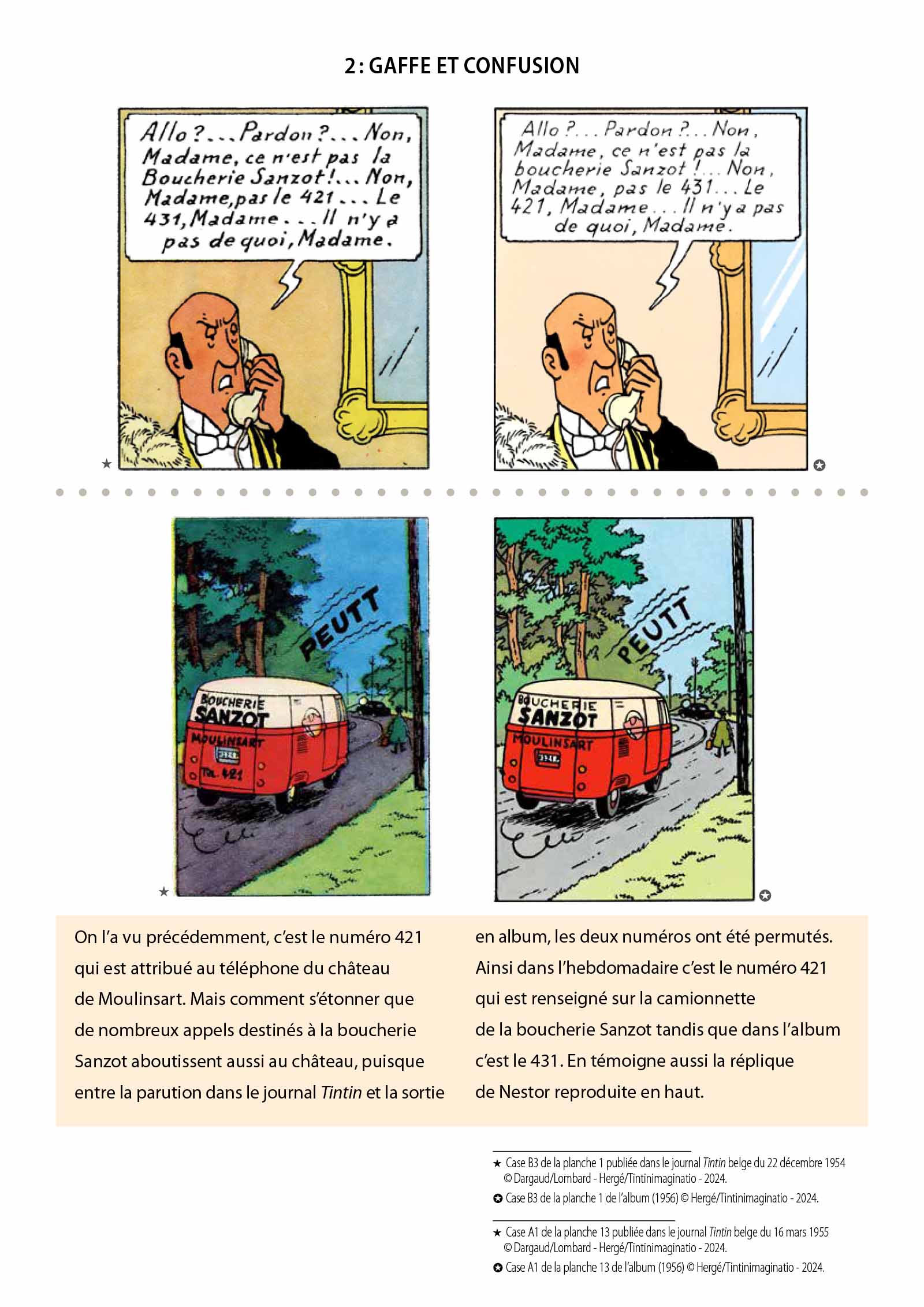 Ensuite, dès la page 44, le récit aura les honneurs de la double page centrale de l’hebdomadaire. La composition de cette double page engendrera encore pas mal de différences. Nous aurons l’occasion d’y revenir, mais il faut savoir que malgré l’antériorité de la parution dans le journal Tintin, les planches ont d’abord été réalisées en vue de l’album et ont été remontées ensuite pour une publication « à l’italienne » dans le journal Tintin.