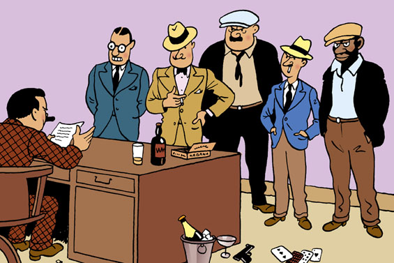 L’ombre de Al plane déjà dans Tintin au Congo puisque Tintin l’empêche lui et sa bande de contrôler la production de diamant. Dans Tintin en Amérique, Tintin vient cette fois sur les terres mêmes de Al Capone à Chicago. Al Capone est le seul méchant ayant vraiment existé et dessiné dans les Aventures de Tintin sous son vrai nom. Dès son arrivée, Tintin doit affronter la bande à Al Capone et parvient même à bâillonner le roi de la pègre. Hergé s’inclinant devant la réalité (à l’époque Al Capone court toujours) le fait disparaître de son récit sans autre explication et se tourne vers un autre chef de bande rival du grand Al, Bobby Smiles (le vrai rival se nommait Georges Bugs Morau).
