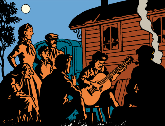 Avant de traverser l'album, Les Bijoux de la Castafiore, les tziganes ont parcouru l'Europe d'est en ouest et du nord au sud. Chassés, pourchassés, méprisés, soupçonnés de tous les méfaits. La leçon des Bijoux : chaque peuple a droit à la dignité, et celle-ci ne peut naître que dans le dialogue. Suite à quelques incidents locaux, la répression s'abat sur les « gens du voyage », en France, en Belgique... après la Roumanie et la Bulgarie, où les persécutions sont permanentes. Les Roms, un peuple maudit ?