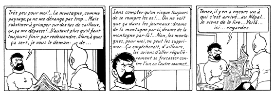 Comme le disait si bien Jean Ferrat «Que la montagne est belle» mais elle ne plaît pas toujours à tout le monde. Le capitaine Haddock le crie haut et fort «Les montagnes, pour moi, on peut les supprimer...». D'aucuns préfèrent la mer et le farniente. Hergé ne peut pas résister de planter un décor de «vacances» qui correspond à son esprit scout !