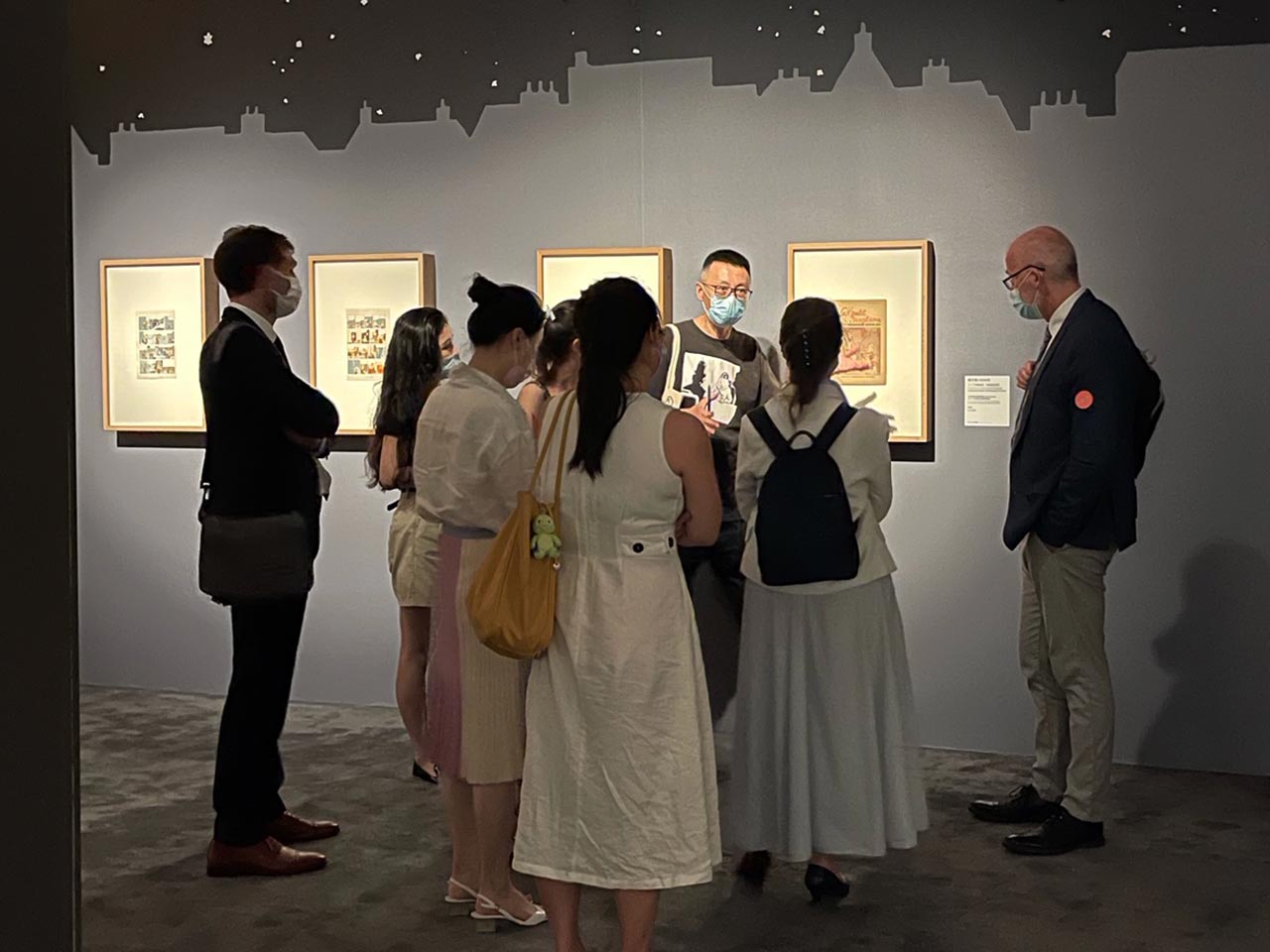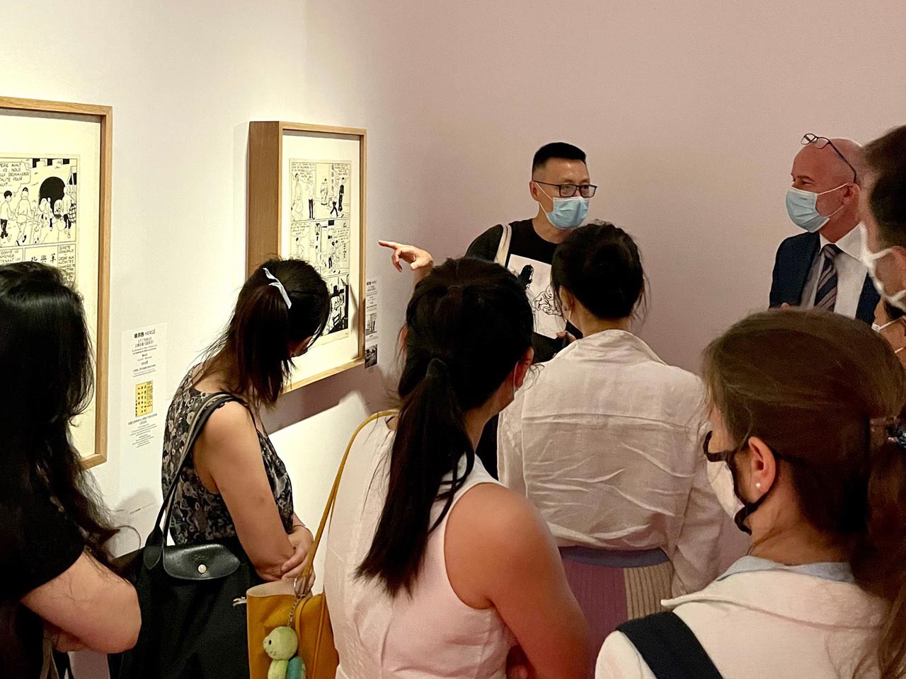 Le samedi 11 septembre dernier, un workshop a été organisé à l’exposition. L'orateur et dessinateur a d'abord comparé l’architecture des maisons de Bruxelles et celle de Shanghai. Il a ensuite enseigné aux participants comment dessiner la résidence bruxelloise du père de Tintin, Hergé.