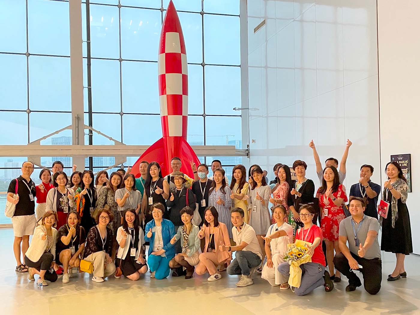 La célèbre Fusée en damier du professeur Tournesol est arrivée à Shanghai. D'une hauteur de 6m, elle s'impose à la Power Station of Art.