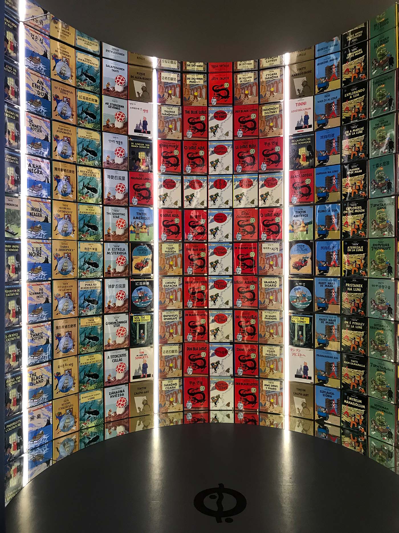 Elle parcourut les salles émerveillée, jusqu’à la très élégante pièce cylindrique où sont exposés du sol au plafond des albums dans toutes les langues publiées.