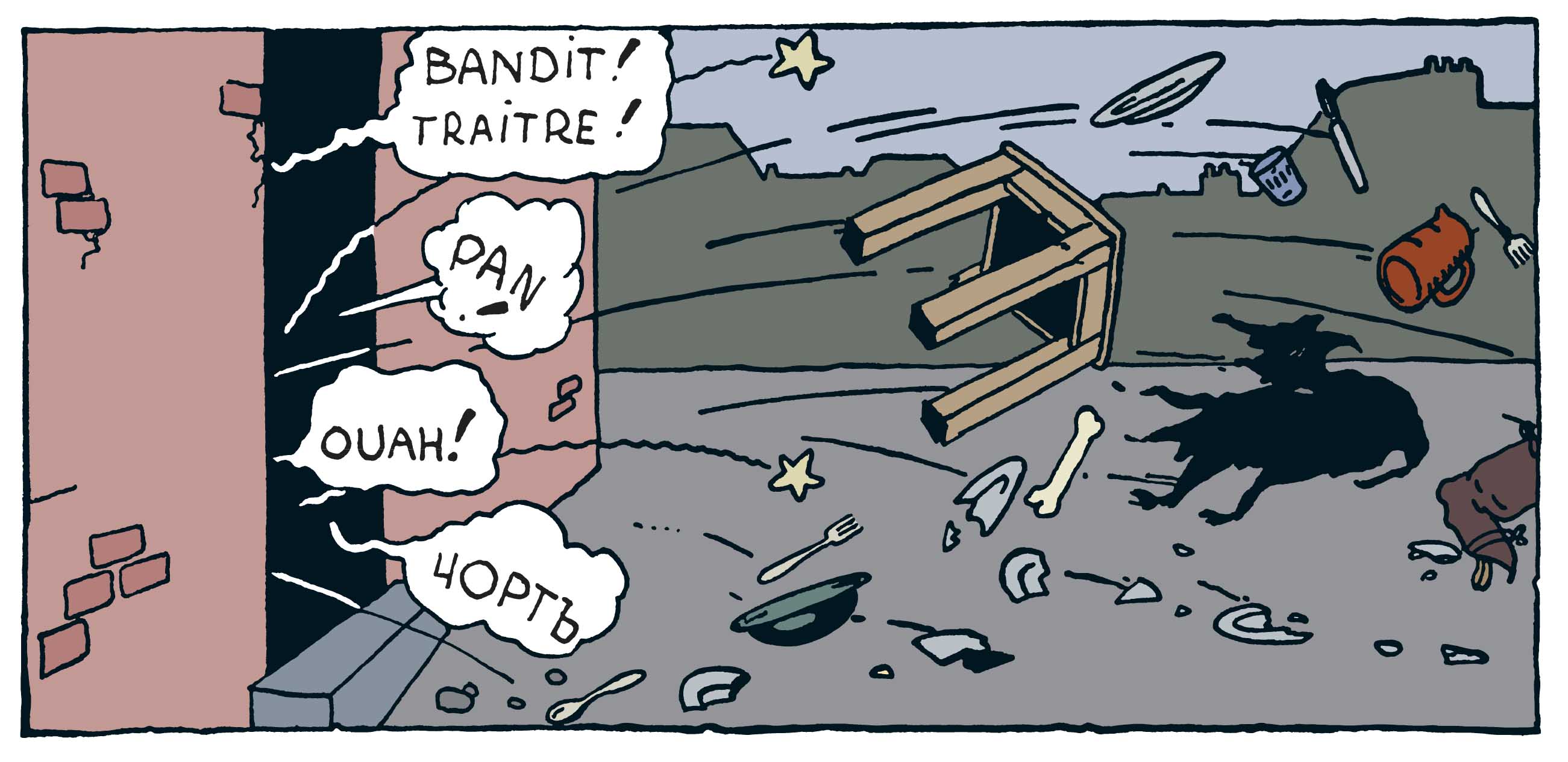 Malheureusement pour Tintin, les repas ne sont jamais gratuits. Il en paye même souvent le prix fort. Et si leur addition est salée, c’est parce que des malintentionnés s’invitent souvent à sa table sans crier gare. Dans ce cas, le repas vire aussitôt au traquenard. Vif d’esprit et toujours sur le qui-vive, le petit reporter sent vite l’entourloupe venir et ne tarde pas à se défaire de ces mauvais payeurs, quitte à sacrifier une bonne soupe aux choux à la mode soviet.