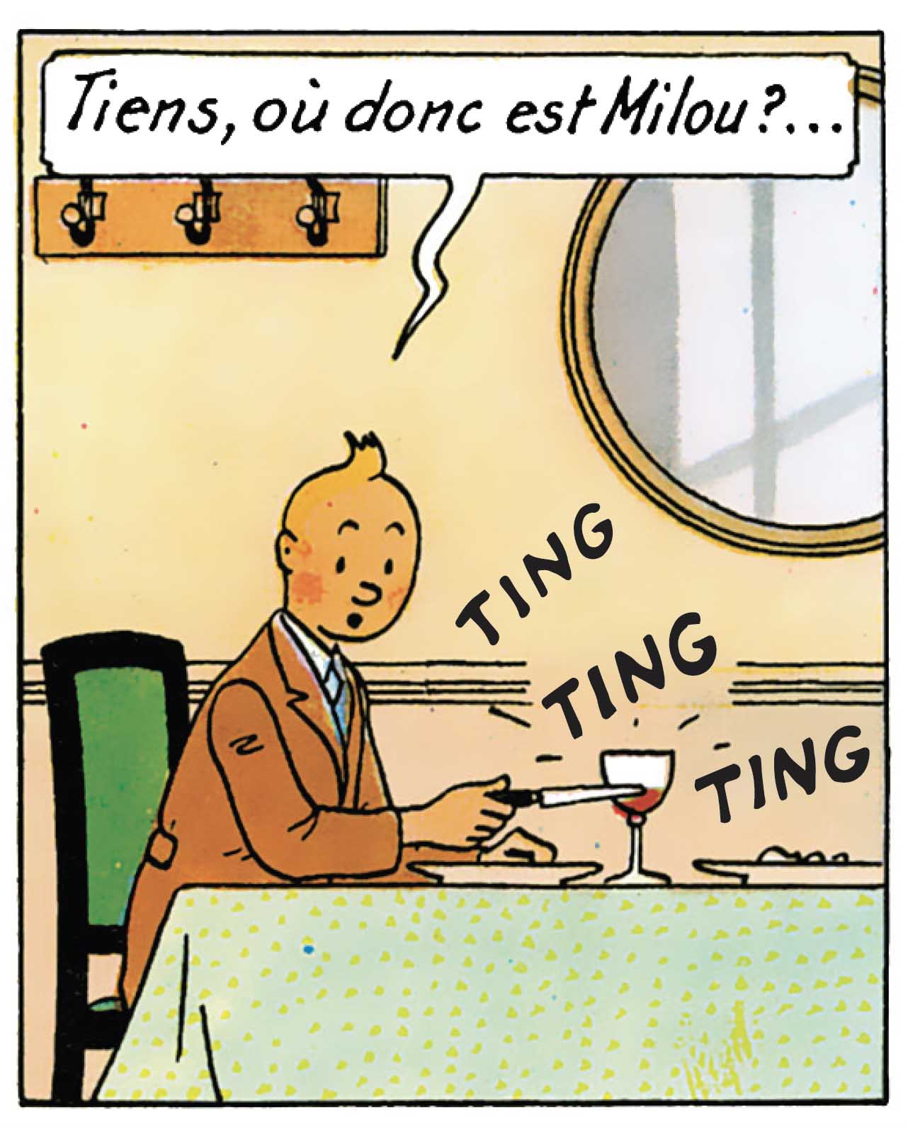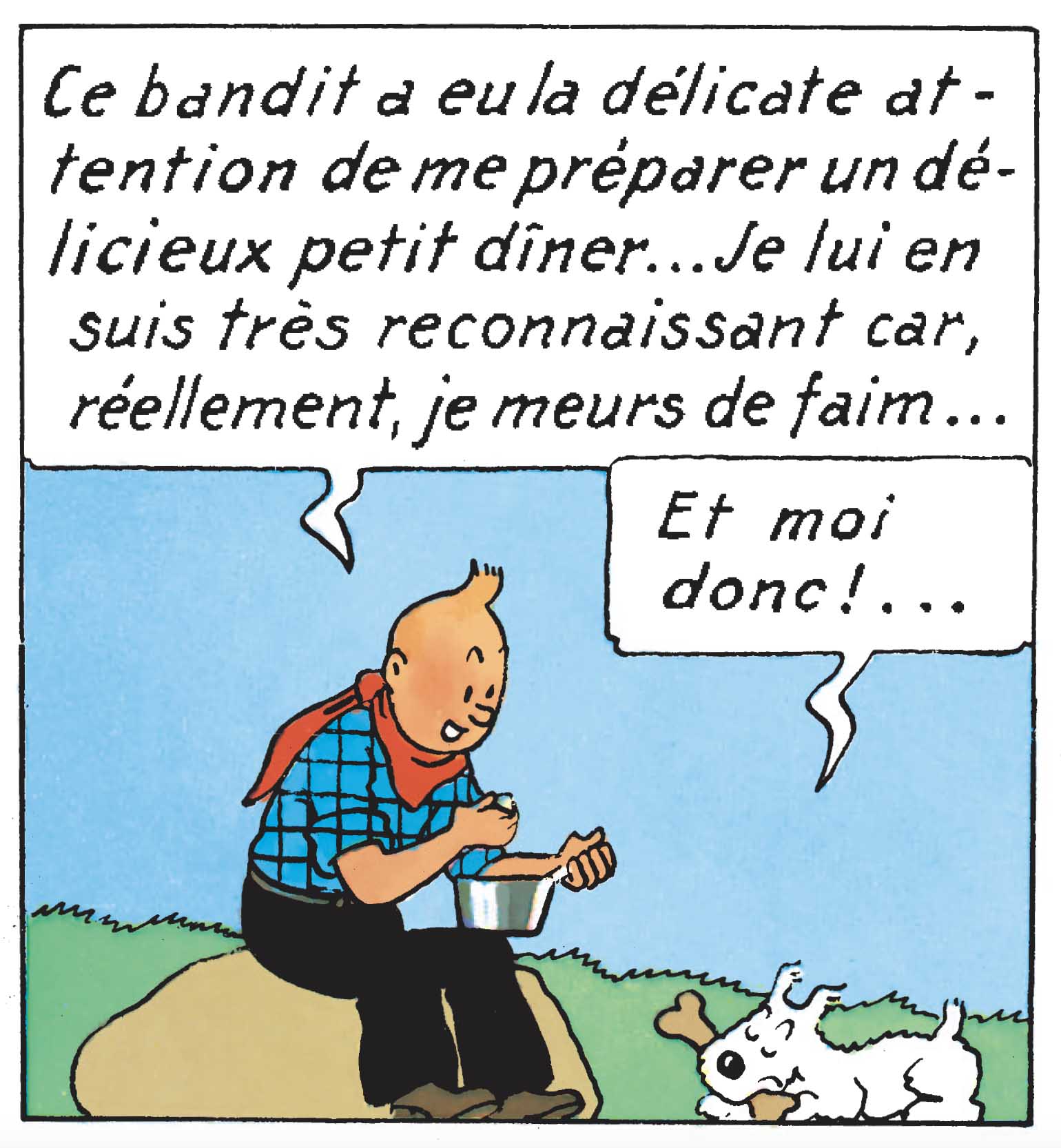 Chez Hergé, les repas constituent un repère temporel simple et efficace puisqu’en fonction du type consommé, ils indiquent implicitement aux lecteurs le moment précis de la journée pendant lequel se déroule la séquence.
