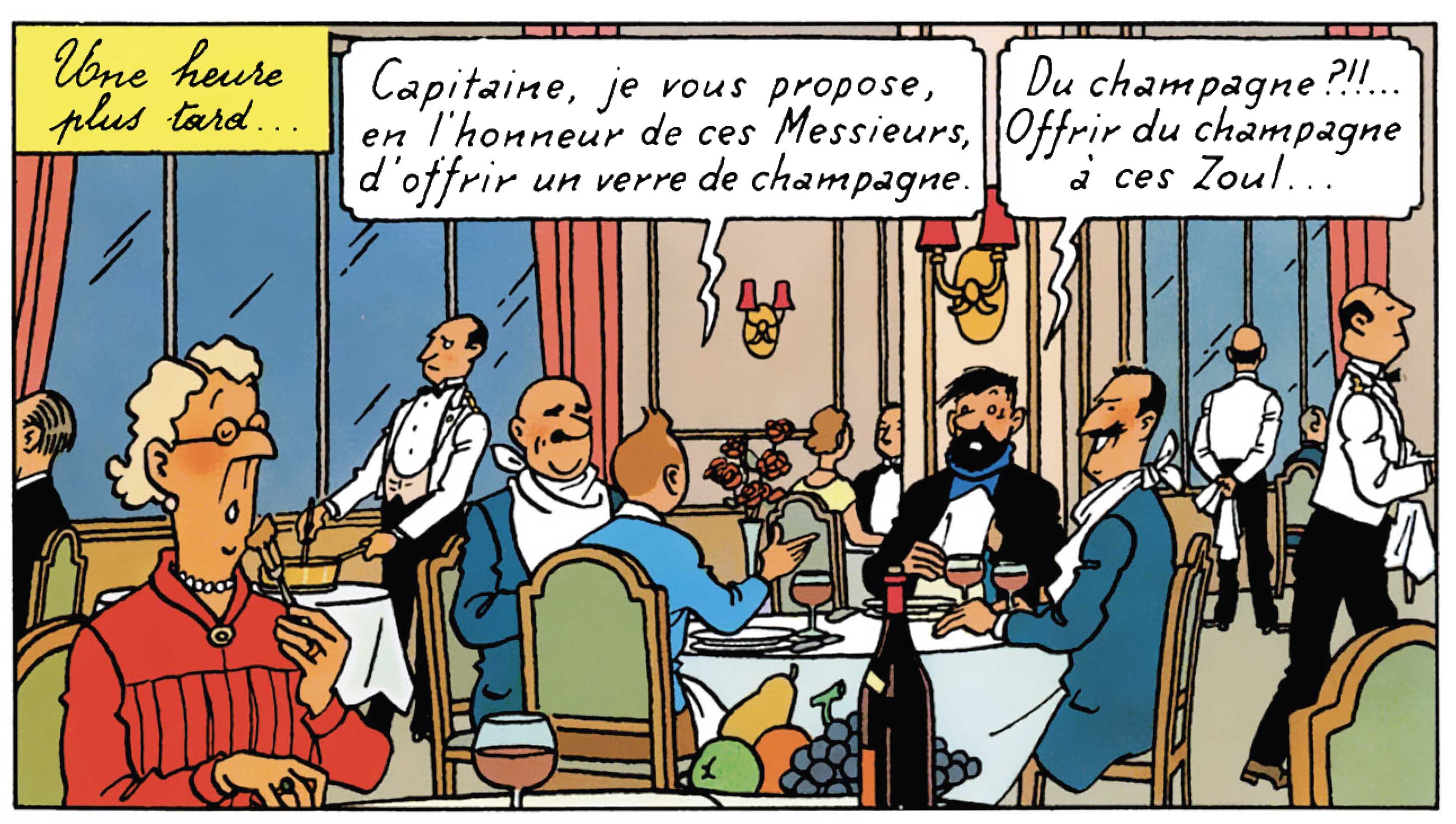 Il paraît que, comme la vengeance, la revanche est également un plat qui se mange froid. Aussi, dans l’Affaire Tournesol, c’est à son tour de tromper l’ennemi. Et pour ce faire, rien de tel qu’un bon champagne pour l’étourdir et lui délier la langue. Après tout, il n’est-il pas coutume de dire… in vino veritas ?