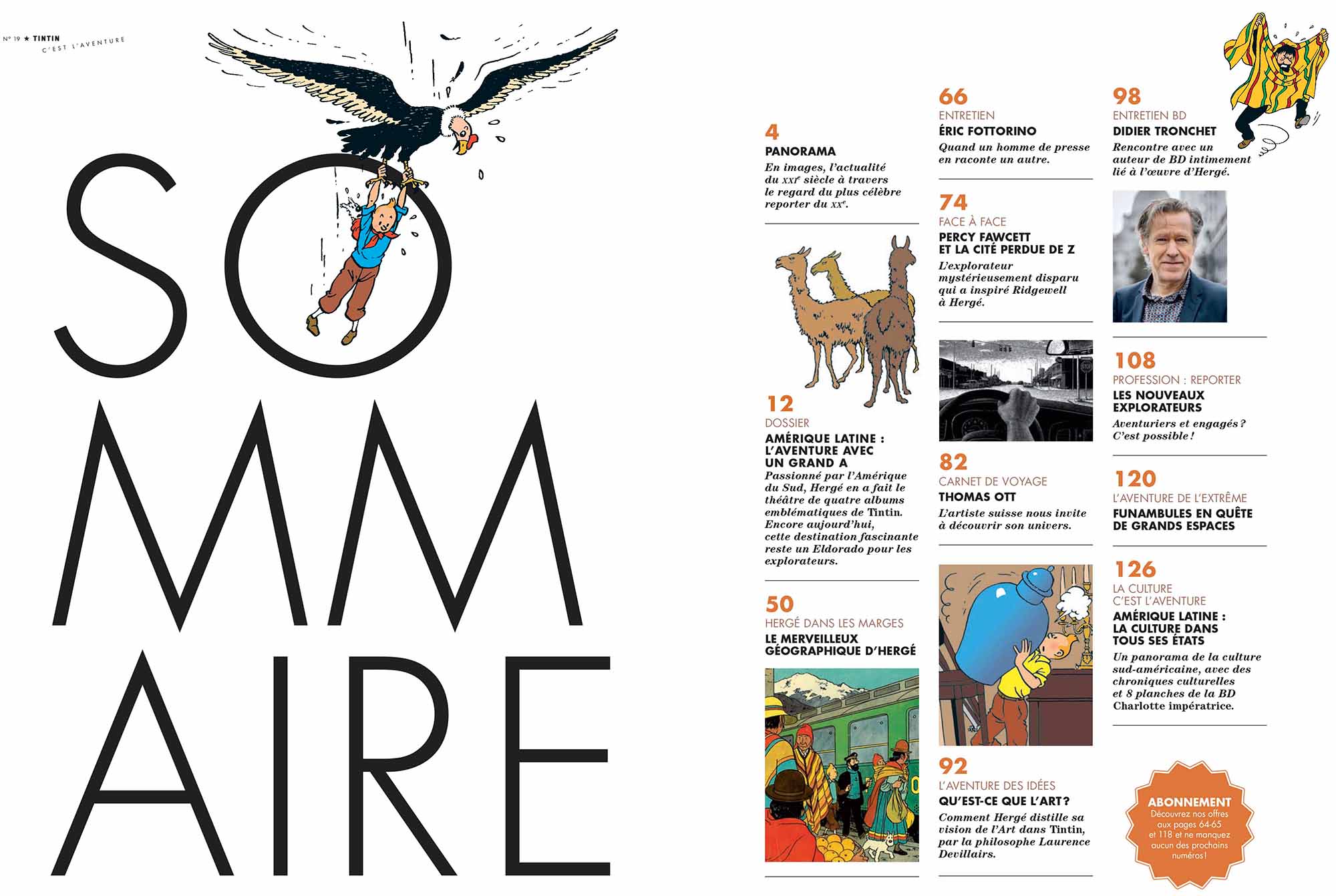- Deux nouvelles rubriques : "La culture c'est l'aventure" avec de passionnantes chroniques culturelles pour redécouvrir l'Amérique latine à travers une sélection de livres, films et événements et "L'aventure des idées" qui propose une analyse de la philosophe Laurence Devillairs sur l'Art dans les albums de Tintin.