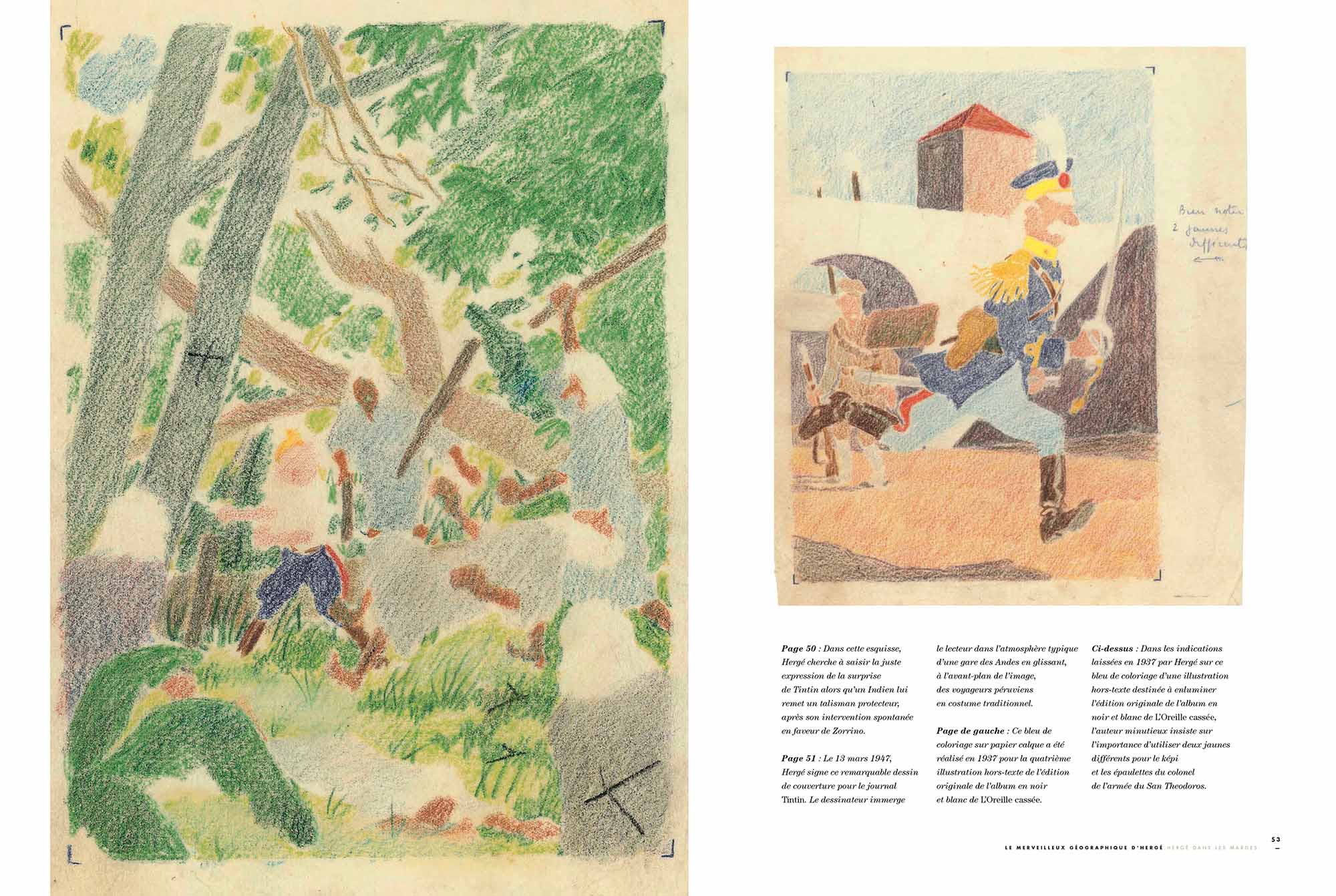 - Des esquisses, des croquis et des dessins préparatoires d'Hergé sur les aventures de Tintin en Amérique du Sud