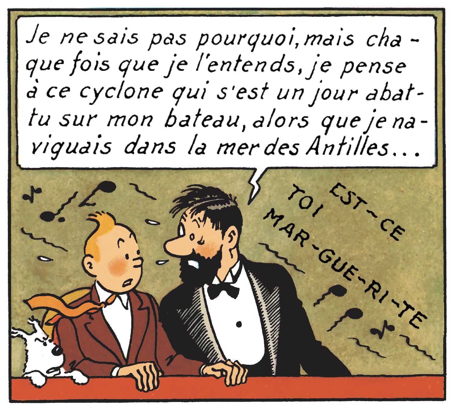 Nous l’avons vu dans le précédent dossier, Hergé fait appel à la musique et ce, tout au long de son oeuvre, pour sonoriser ses histoires imagées. Bien entendu, en plus des parties instrumentales, les chansons sont, elles aussi, convoquées. Encore faut-il que les paroles de celles-ci collent à la tonalité du récit. Mais heureusement, dans ce domaine, le répertoire est riche et varié. Si riche et varié qu’Hergé y a puisé les meilleurs titres c’est-à-dire, ceux qui sonnent et qui résonnent, au plus juste, dans son opéra de papier.