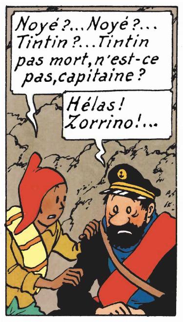 Bien entendu, Tintin est aussi un talentueux « trompe-la-mort ». Et s’il renaît toujours de ses cendres, ce n’est pas parce qu’il est immortel, mais parce que le scénario l’impose. D’une part, parce qu’en tant que héros, il incarne l’espoir et le triomphe face à l’adversité (il se rit donc de toutes les difficultés, y compris celles qui peuvent lui être fatales) ; d’autre part, parce que, sans cette indispensable condition, adieu saga et continuité (précisons ici que la disparition du personnage principal met toujours à mal la dynamique de l’univers narratif d’une série).