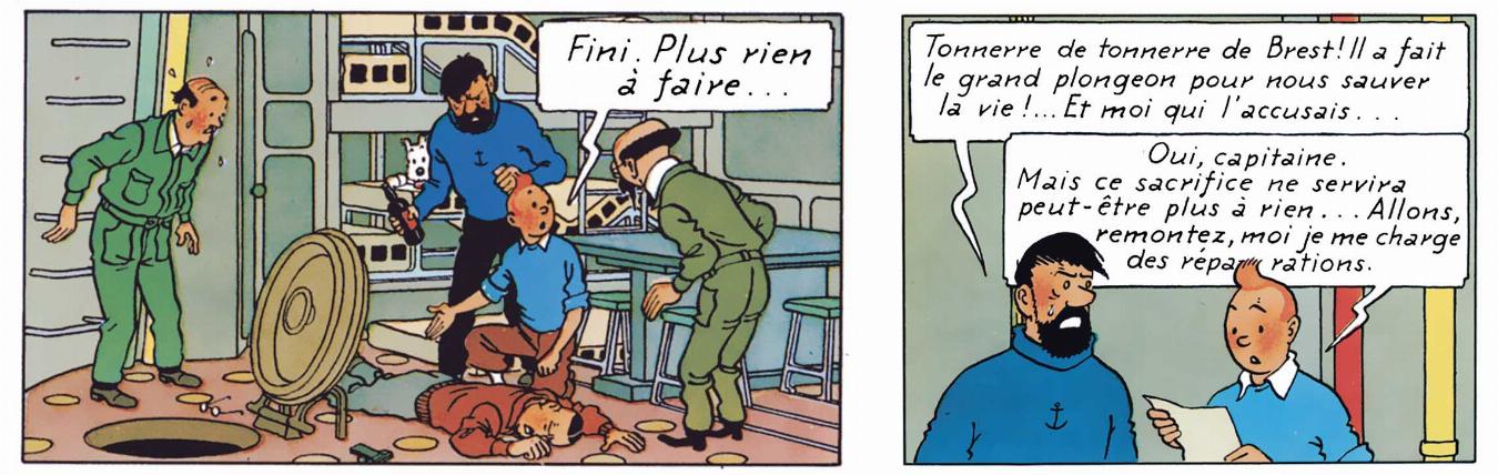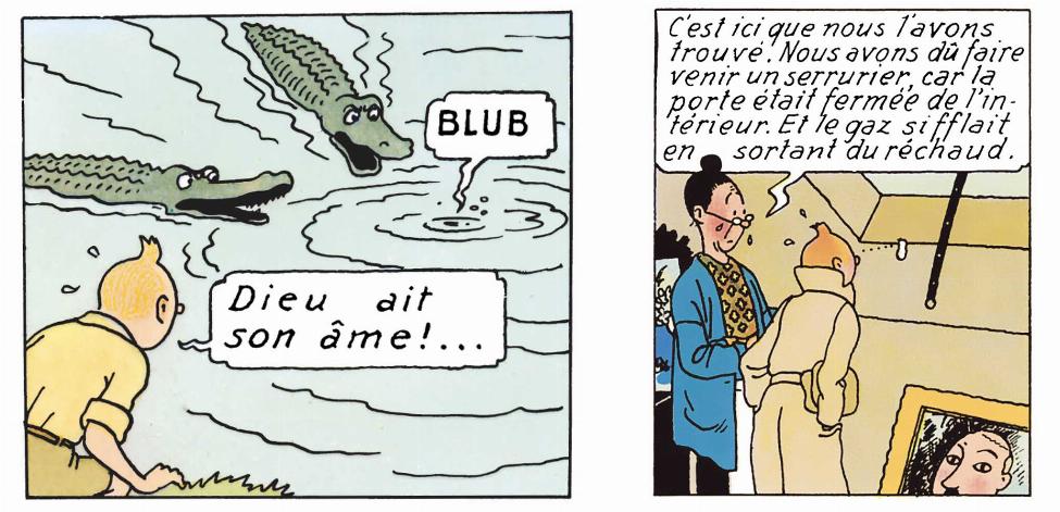 Effectivement, étant donné que les Aventures de Tintin s’adressent à un jeune public, Hergé a toujours pris soin de ménager ses effets – et les sensibilités – pour que ses histoires restent toujours accessibles. Raison pour laquelle la mort se fait plus discrète et subtile encore. Pour cela, l’auteur-dessinateur belge n’hésite pas à jouer sur… ou plutôt, avec les mots, mais sans jamais oublié de les peser. Car, il sait pertinemment que s’ils sont bien choisis, ils font mouche du premier coup. Et sans heurter, ni blesser, qui plus est.