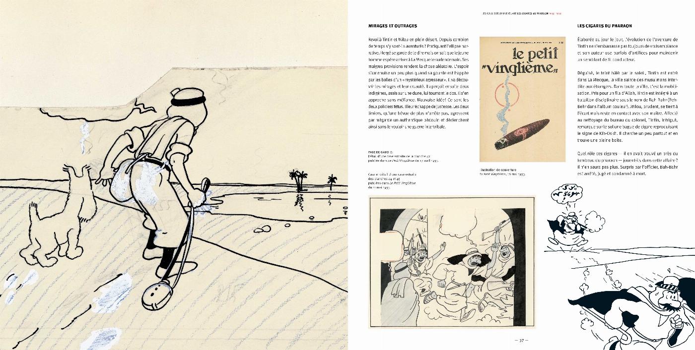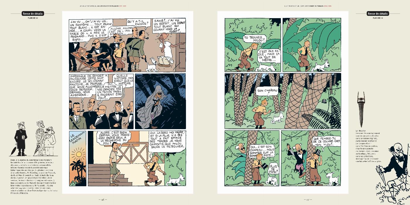 - Planches commentées : Les anecdotes en marge des planches des Cigares du Pharaon vous apprendront par exemple l’origine de l’iconique signe de Kih-Oskh, ou encore les sources qui ont inspiré Hergé pour l’intérieur du tombeau traversé par Tintin dans l’album.