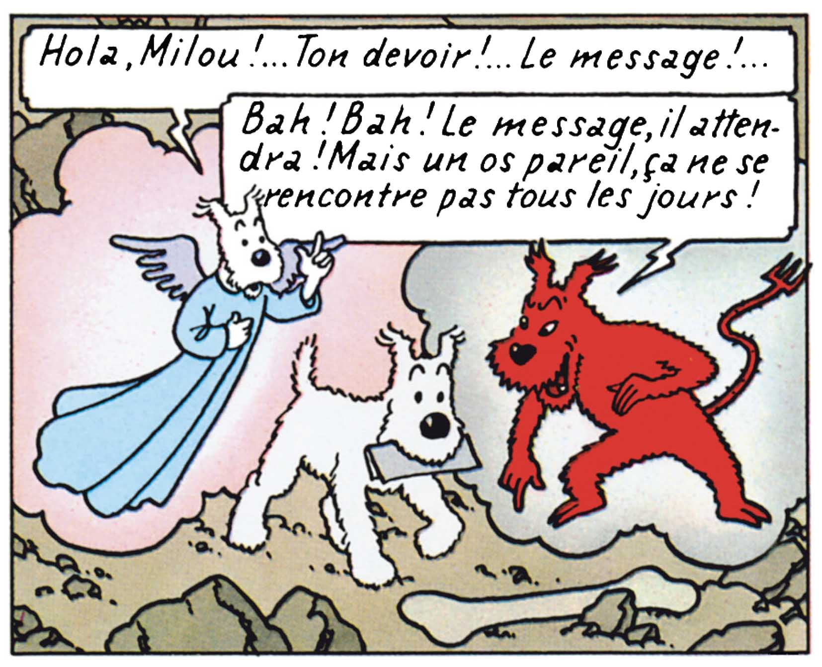 Chez Tintin, la morale est active, incarnée, discrète. Point de théories : elle passe par le geste. Même avec les animaux, il fait preuve d'une aisance étonnante. Il suffit d’observer Milou, qui lui répond avec un naturel déconcertant, comme si cette complicité entre eux appartenait à une logique bien à part, mais surtout allait de soi.