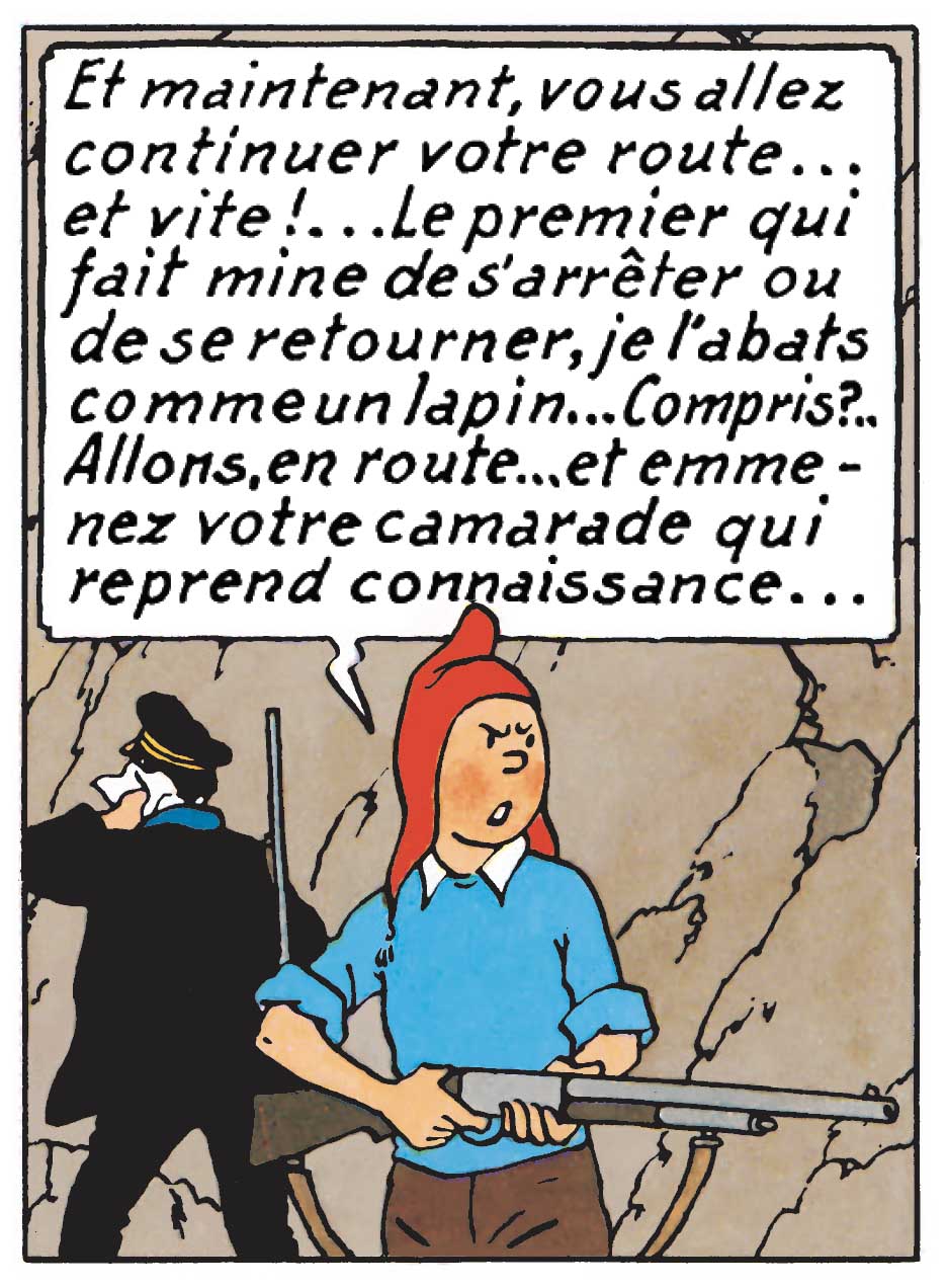 Et on en vient à un sujet épineux : qu’en est-il des bourre-pifs dans ce cas ? Eh bien, depuis le début, Tintin n’a été jamais un héros sibyllin et complètement pacifiste.