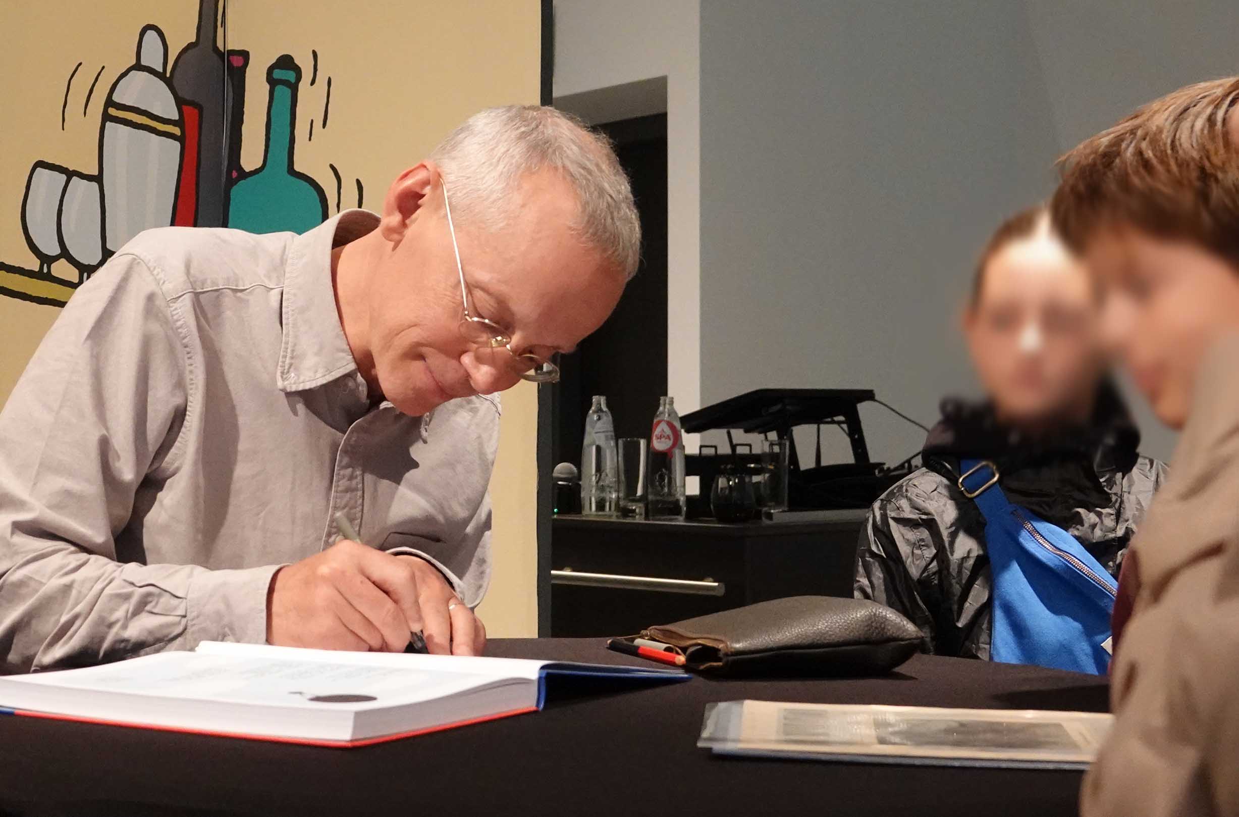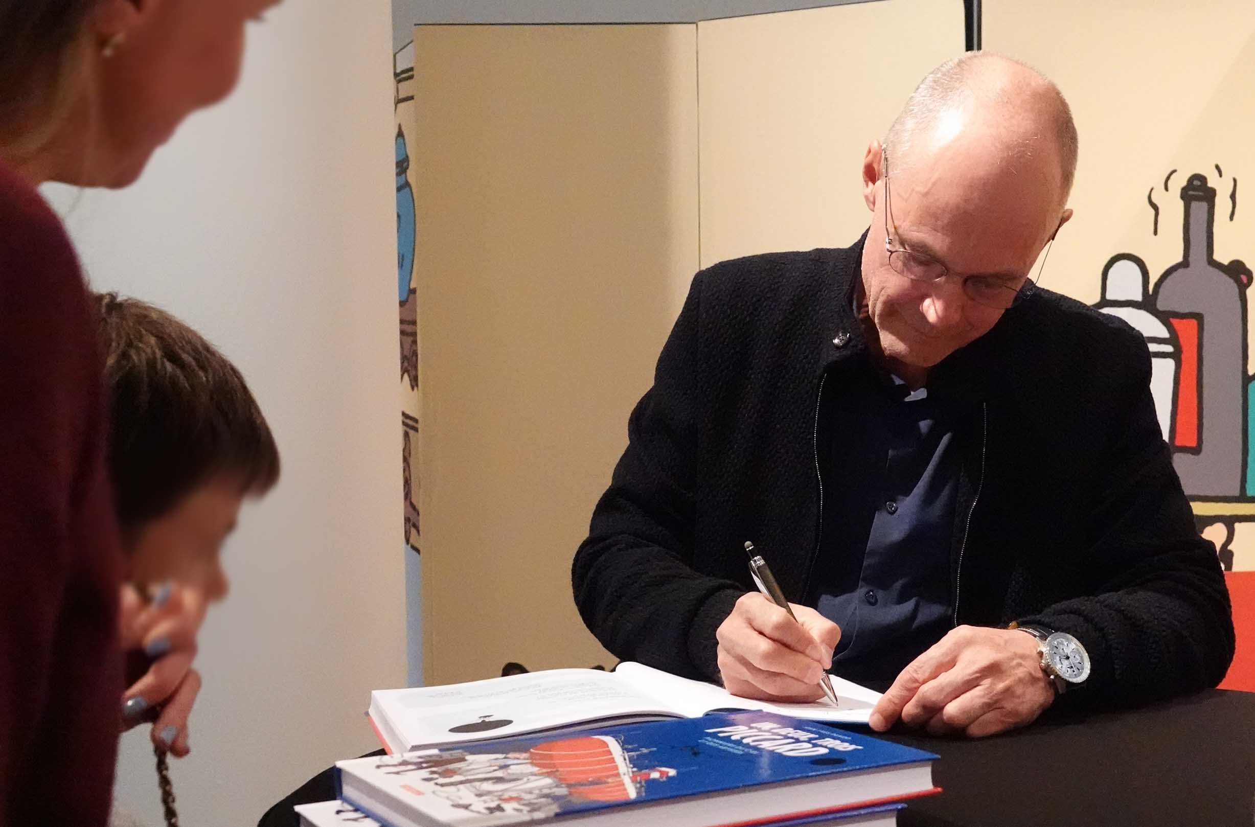 À partir de 14 h, le public s’est pressé dans l’atrium du Musée Hergé pour une présentation suivie d’une séance de dédicaces autour de l'album Un, deux, trois Piccard.