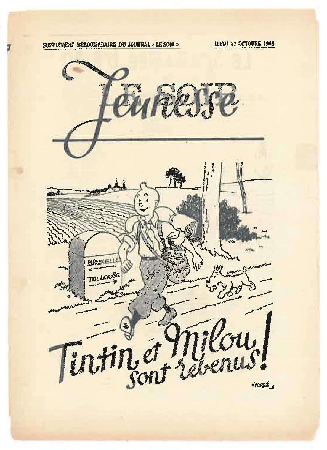 De retour à Bruxelles, Hergé doit tout recommencer. Le nouveau directeur du Soir, Raymond De Becker, lui propose alors de créer un supplément illustré pour la jeunesse. Hergé accepte, choisissant d’y voir une manière de continuer à faire vivre Tintin, tout en se tenant à l’écart de toute position politique.